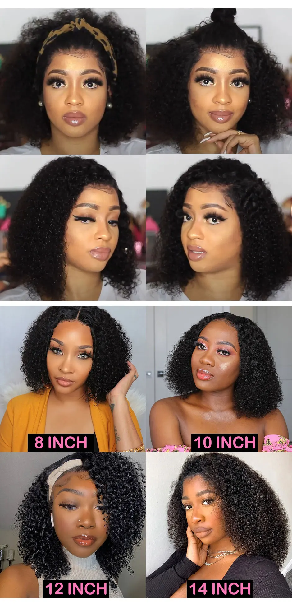ISEE HAIR 25CM Kinky Curly Lace Front Wig Curly Bob Lace Front Wigs For Women Lace Frontal Wig Brazilian Curly Human Hair Wigs