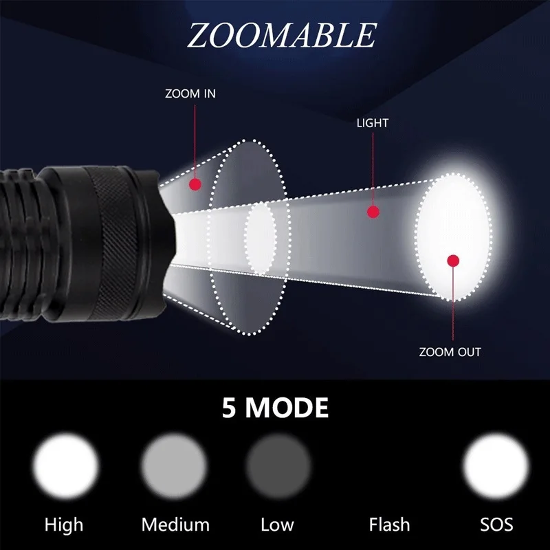 Светодиодный фонарик XHP90, зарядка через Usb, растягивающийся зум,...