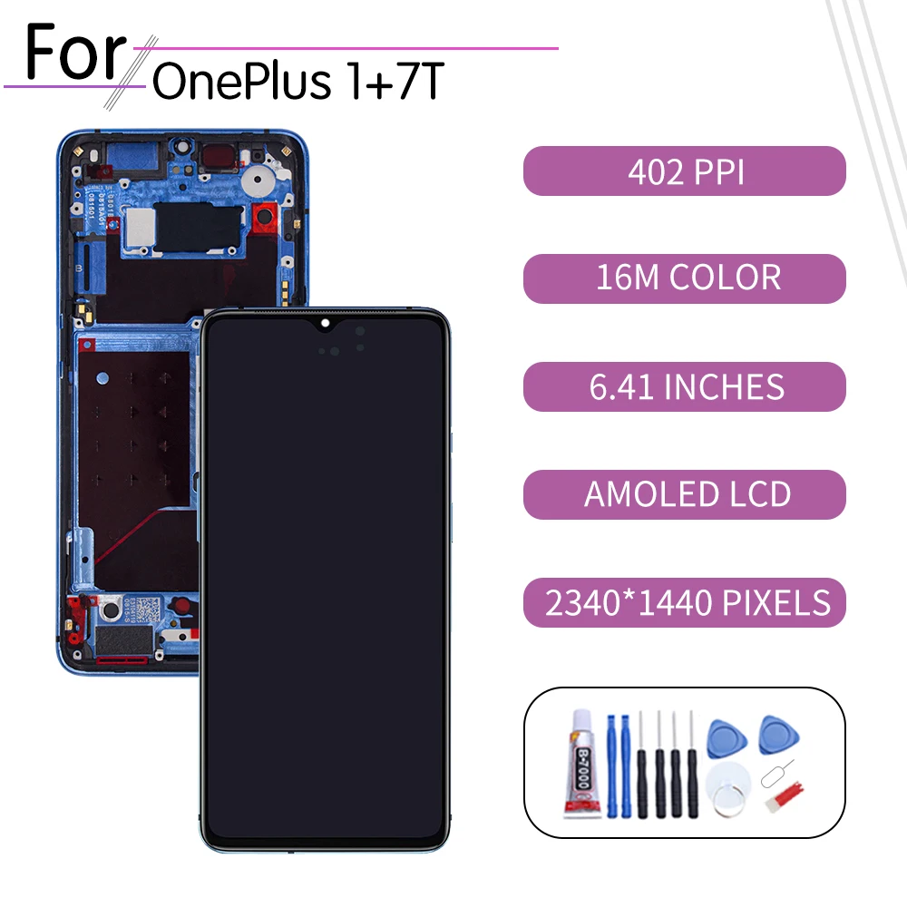 Оригинальный ЖК-дисплей 6,55 дюйма для OnePlus 7T, дисплей для Oneplus 7T с рамкой HD1901 HD1903 HD1900 HD1905