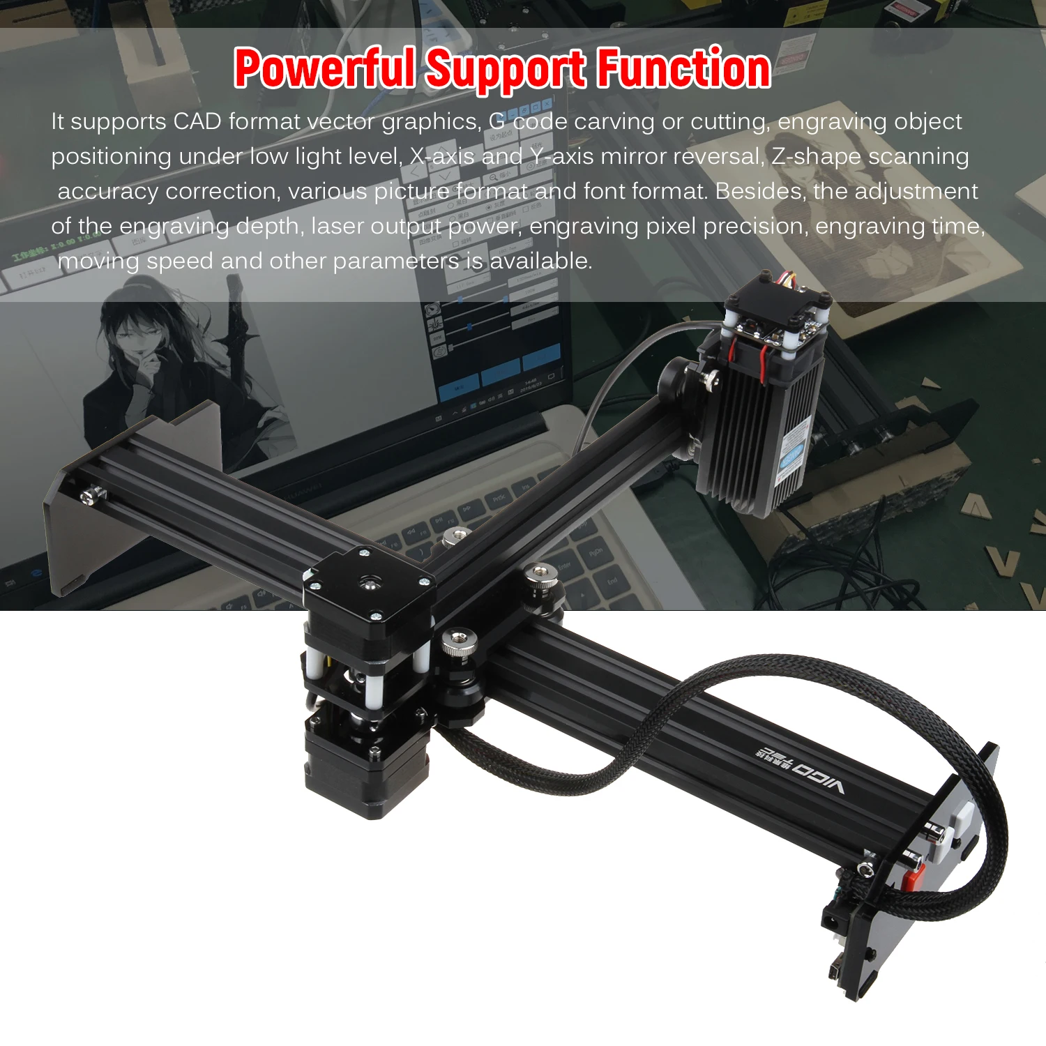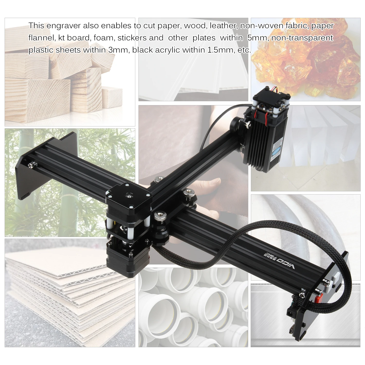 Особенности:Премиум Материал:Продвинутая материнская плата с процессом SMT, легкий и малый размер; Отличное качество лазерной головки, прочный в использовании; Хорошо продуманная кнопка, избегающая проблемы с плохим контактом, вызванной длительным использованием; все это обеспечивает стабильную и хорошую производительность гравера.Широкая Площадь Гравировки и высокая точность:Более длинная ось X и ось Y, расширение площади гравировки до 320 мм x 190 мм. Высокопроизводительный процессор с высокоточным алгоритмом, двигателем с ЧПУ с ультравысоким разрешением и хорошей направляющей из алюминиевого сплава, обеспечивает более эффективную и точную работу по резке.Простота в эксплуатации:Этот портативный и компактный лазерный гравер имеет Т-образную структуру и без рамки, уменьшая возможность отключения левого и правого стержней, деформации, трудно отладки таких проблем. И он протестирован и разделен на 2 основных модуля, удобно для установки.Удобное использование:Он поддерживает OTA для обновления аппаратных средств материнской платы, беспроводное подключение для передачи гравировальных файлов на материнскую плату sd-карты, Автономная работа, что позволяет вам просматривать и гравировать под no кабель передачи USB состоянии.Широкое применение для удовлетворения ваших потребностей:Вы можете гравировать товарный знак, qr-код, узоры, текст и многое другое с материалом дерево, бамбук, кожа, пластик и т. Д. Также вы можете использовать его для резки бумаги, дерева, кожи, нетканого материала, бумажной фланели, kt доски, пены, наклеек и других пластин в пределах 5 мм, Non-прозрачный пластик листов в пределах 3 мм, черный акрил в 1,5 мм и т. д.Характеристики:Материал: алюминиевый сплав + акрилОсновной цвет: черныйВход: переменный ток 110-220 ВВыход: DC 12V 5AТип вилки: штепсельная вилка европейского стандартаПлощадь Гравировки: 320*190 мм/12,59*7,5 дюймаМодель лазерной головки: BX20Поддерживаемые ОС: Win 7 / 8 / 10Поддерживаемый Язык: китайский, английскийПорт: DC2.5, usb-кабель, слот для sd-карты, Wi-Fi APПоддерживаемый Формат изображения: jpg / bmp / pngПоддерживаемый формат шрифта: все шрифты в системе Win, скачанный fontlibПоддерживаемое подключение: usb-кабель/Беспроводное подключение Wifi/Беспроводная передача файлов на sd-карту для работы в автономном режимеРежим гравировки: черно-белый точечный режим, черно-белый Линейный режим, серый точечный режим, режим серой линии и контурный режим.Диапазон применения гравировки: дерево, бамбук, бумага, пластик, кожа, смола, акрил, рога и т. д.Размер изделия: 445*401*128 мм/17,52*15,79 * 5.04inПосылка Вес: 2,5 кг/88,18 ozРазмер посылка: 500*208*105 мм/19,7*8,2 * 4.1inПримечание:Только лазерный гравер, другие аксессуары не включены.Это набор «сделай сам», который должен быть собран самостоятельно.Пожалуйста, носите очки во время использования и избегайте касания лазера непосредственно с вашими глазами и кожей.Эффект гравировки зависит от выходной мощности, скорости гравировки, материала и многого другого.Перед началом работы в автономном режиме убедитесь, что sd-карта была вставлена в слот для карты.При использовании беспроводного соединения поместите контроллер и сетевой маршрутизатор в ту же комнату.Обновите программное обеспечение и прошивку контроллера до последней версии при обновлении.Загрузка доступна только при подключении к WLAN.Из-за ручного измерения возможны от