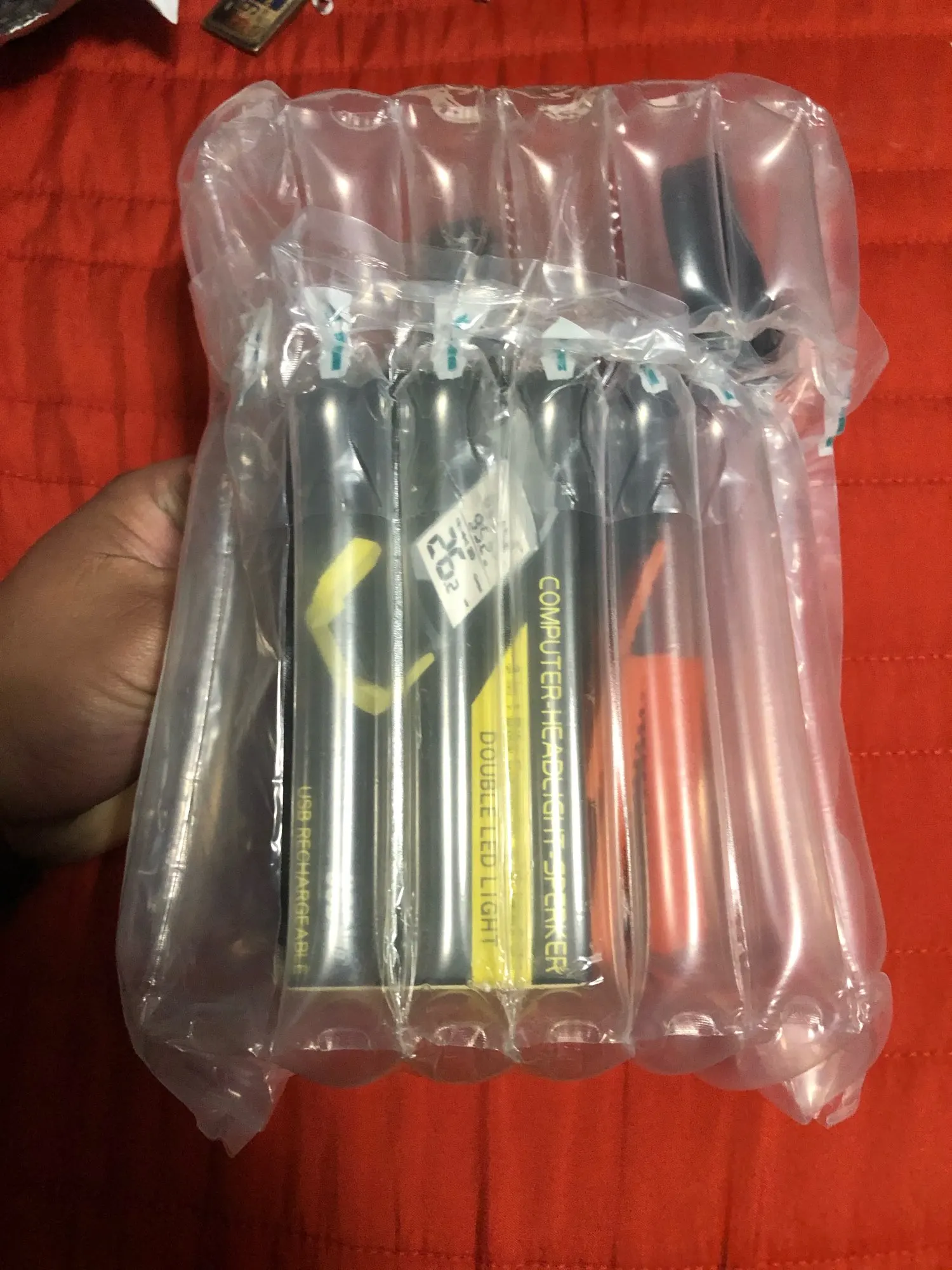 заказывал 2шт., красного и синего цвета. Синий пришёл бледно голубого цвета, видимо для велосипедов будущего, вдруг комуто захочется. Красный цвет темнее чем на картинке, но не существенно. Из минусов сенсор на вилку крепится пластиковыми хомутами, выглядит колхозно. А кнопки управления крепятся резинкой, как надо. На одной линзе были 3 небольшие трещины, это брак, но на свет не влияют. И сделано всё из вонючего самого дешевого пластика. В остальном всё понравилось. Упаковка очень качественная. За хорошую цену товар можно смело брать.