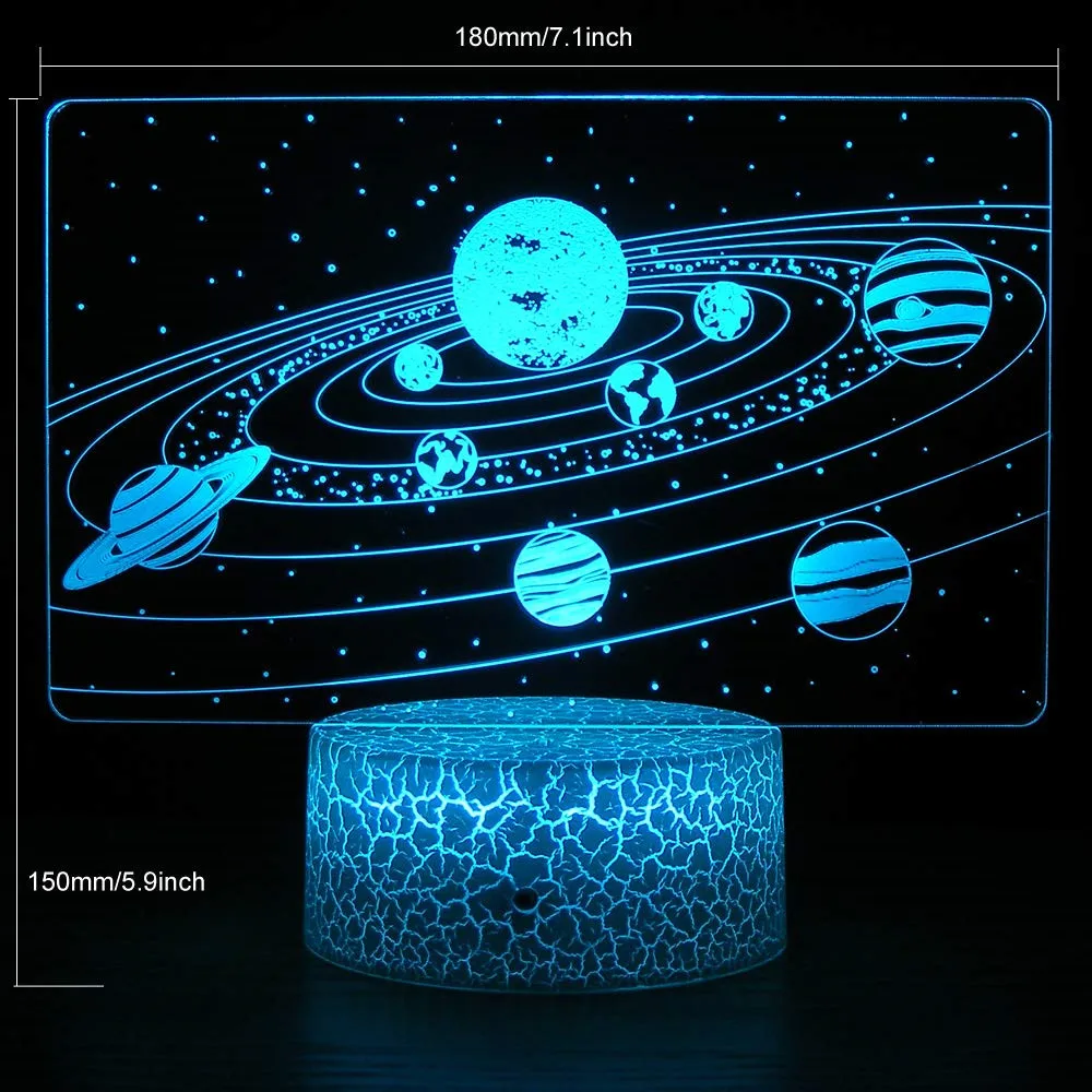 Светодиодная Ночная лампа, 7 цветов, меняющая солнечную систему, 3DOptical Illusion, космическая Галактика для детей, рождественский подарок для дома, спальни