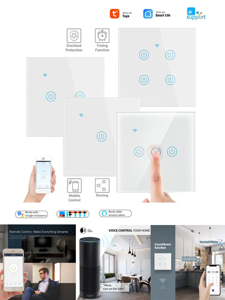 Рабочее напряжение: 220 В переменного тока ~ 240 ВМаксимальная нагрузка: 1 АИсточник питания: L провод (также N и L провод)Материал корпуса: огнестойкий АБС-пластикПанель: закаленное стеклоРазмер: 86*86*36 (мм)Максимальная мощность: 200 Вт/дорогаСтандарт беспроводной связи: 802,11 b/g/nМеханизм безопасности: WPA-PSK/WPA2-PSKМатериал изделия: огнеупорный ПК V0 + панель из закаленного стеклаПульт дистанционного управления Wi-Fi: Включите/выключите светильник из любого местаПоддержка приложения: Бесплатные приложения для iOS и Android (Tuya)Голосовое управление: с Amazon Alexa, Google Home Голосовое управлениеНезависимое управление: управление каждым способом отдельноСостояние синхронизации: Статус устройства в режиме реального времени, предоставленный в приложенииФункция синхронизации: Установите таймер резервации/обратного отсчета для включения/выключения в указанное время