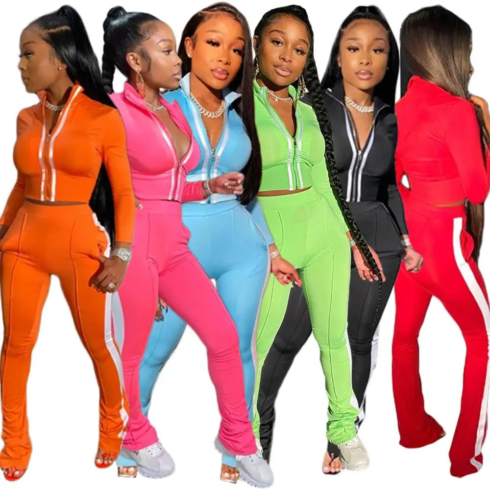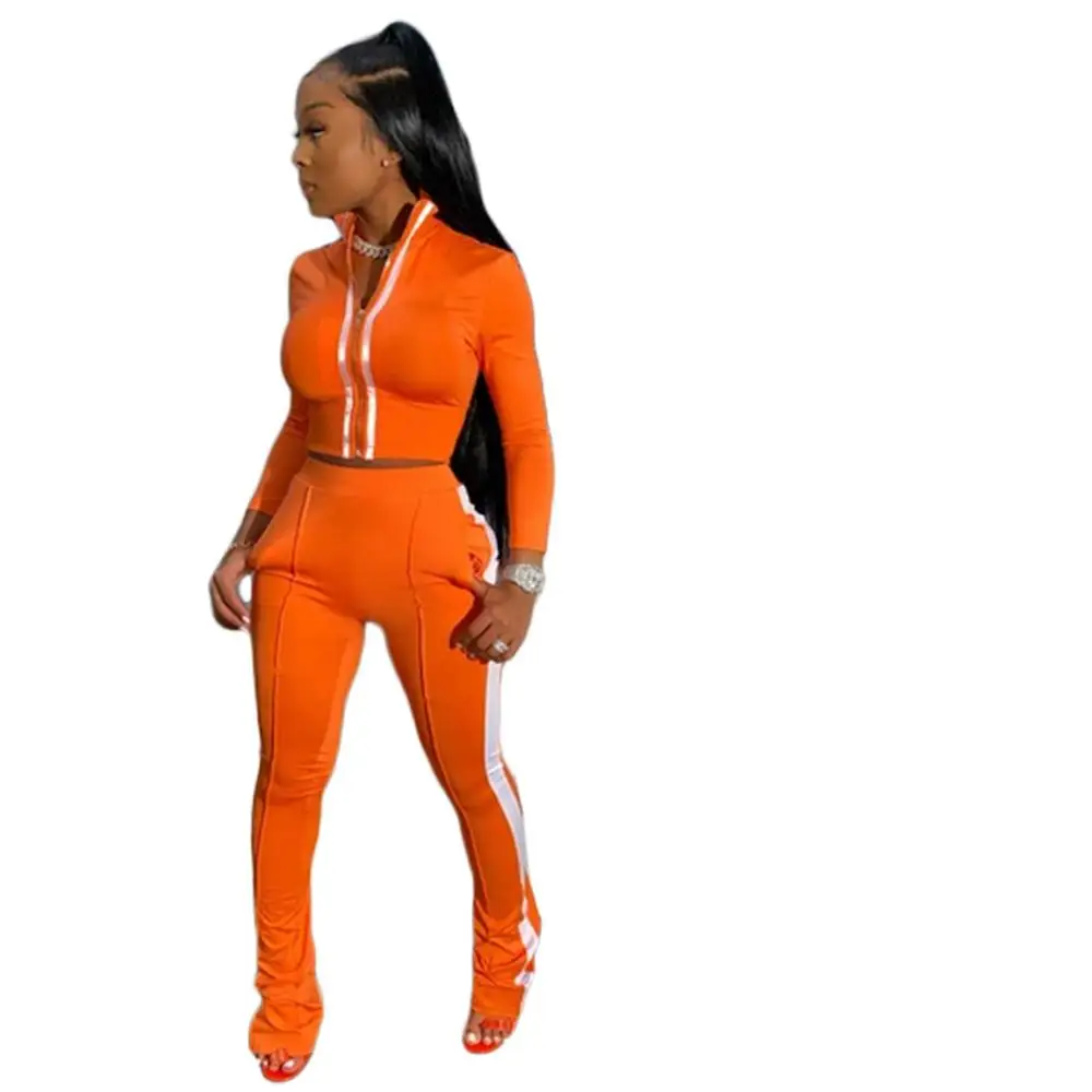 Женский спортивный костюм, однотонный топ на молнии и штаны с карма...