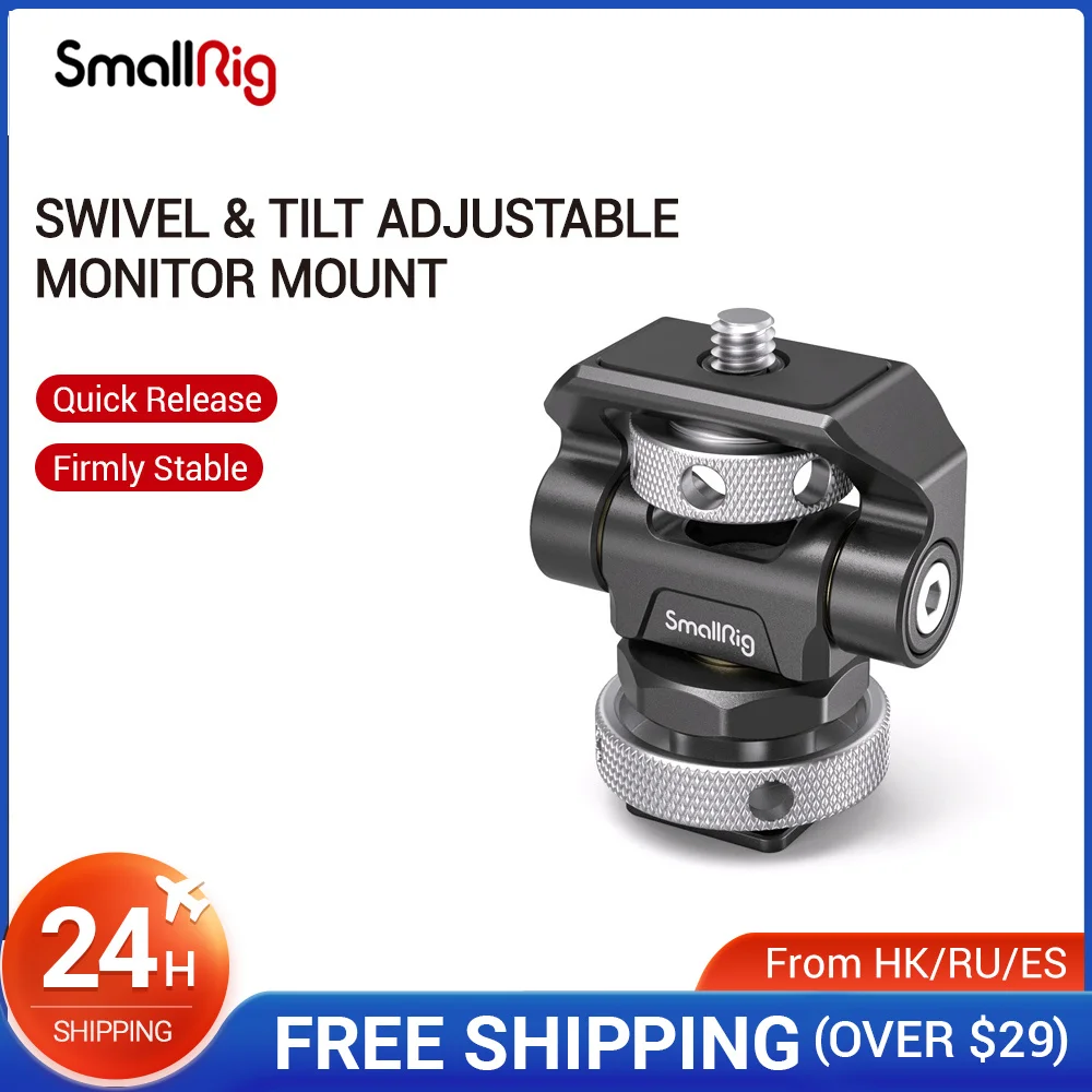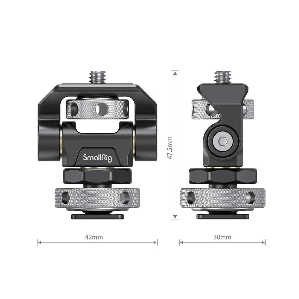 SmallRig поворотное и наклонное регулируемое крепление для монитора с креплением для холодной обуви 2905Ключевые особенности:1. Поддерживает 5 "и 7" бортовой Монитор до 1,5 кг.2. Поворачивается на 360 ° и наклоняется на 170 °.3. Герметичность регулируется на каждой оси.4. Имеет прорези на винтах для затягивания крепления.5. Крепится к камере/клетке/ручке через крепление для холодной обуви.SmallRig поворотное и наклонное регулируемое крепление для монитора с креплением для холодной обуви 2905 предназначено для удержания вашего монитора на верхней части камеры или другой монтажной системы через адаптер для холодной обуви. Он оснащен винтом 1/4 "-20 в верхней части для монитора, светильник или микрофон. Держатель позволяет поворачивать на 360 ° в сторону и наклонять на 170 ° со свободной остановкой в любом положении. Герметичность каждой оси регулируется с помощью шестигранного ключа. Прочная крепление из сплава, изготовленные на станке с ЧПУ; Алюминий и может поддерживать 5 "и 7" монитор до 1,5 кг. Шарнирное и наклонное крепление имеет защитную резиновую прокладку сверху и включает в себя шестигранный ключ для затягивания креплений для дальнейшей безопасности.Дизайнер: медведь, Трейси ДжойПримечание: Пожалуйста, используйте шестигранный ключ для повторного затягивания винта для дальнейшей безопасности.Совместимость:Для серии SmallHD FocusДля серии SmallHD Focus OLEDДля ультрабуга серии SmallHDДля серии SmallHD 500, серии 700Для серии ниндзя AtomosДля Atomos Shogun FlameДля Blackmagic Video Assist 5”Для Blackmagic Video Assist 4K 7”Другое аксессуаров весов вес которых менее 1,5 кг.Посылка включает в себя:1 x Крепление для монитора1 х шестигранный ключРазмеры изделия: 42x47,5x30 ммРазмеры посылка: 76x63x40 ммВес нетто: 76 г ± 5gПосылка Вес: 102 г ± 5gМатериал (ы): алюминиевый сплав, нержавеющая сталь