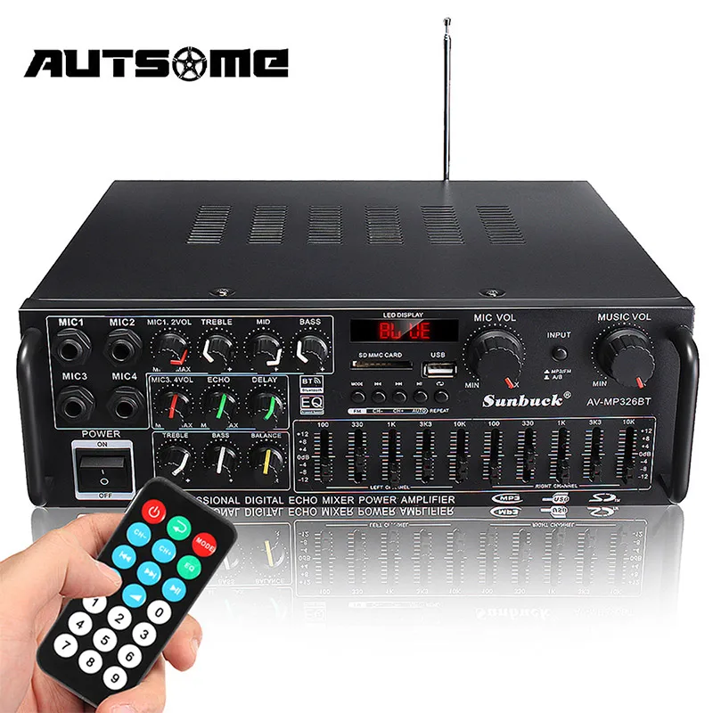 Лидер продаж 2000 Вт 5,0 bluetooth 2-канальный усилитель мощности аудио HiFi 12 В220 В AV Amp динамик с пультом дистанционного управления 4 микро для автомобиля и дома