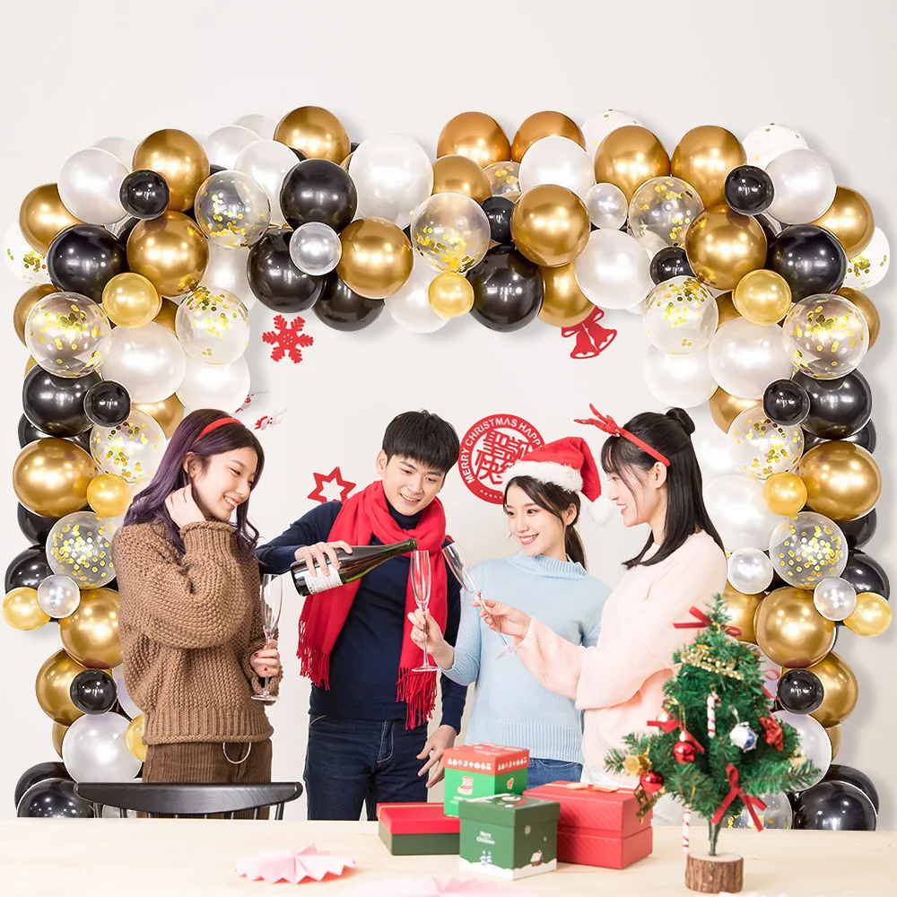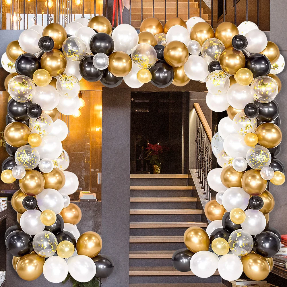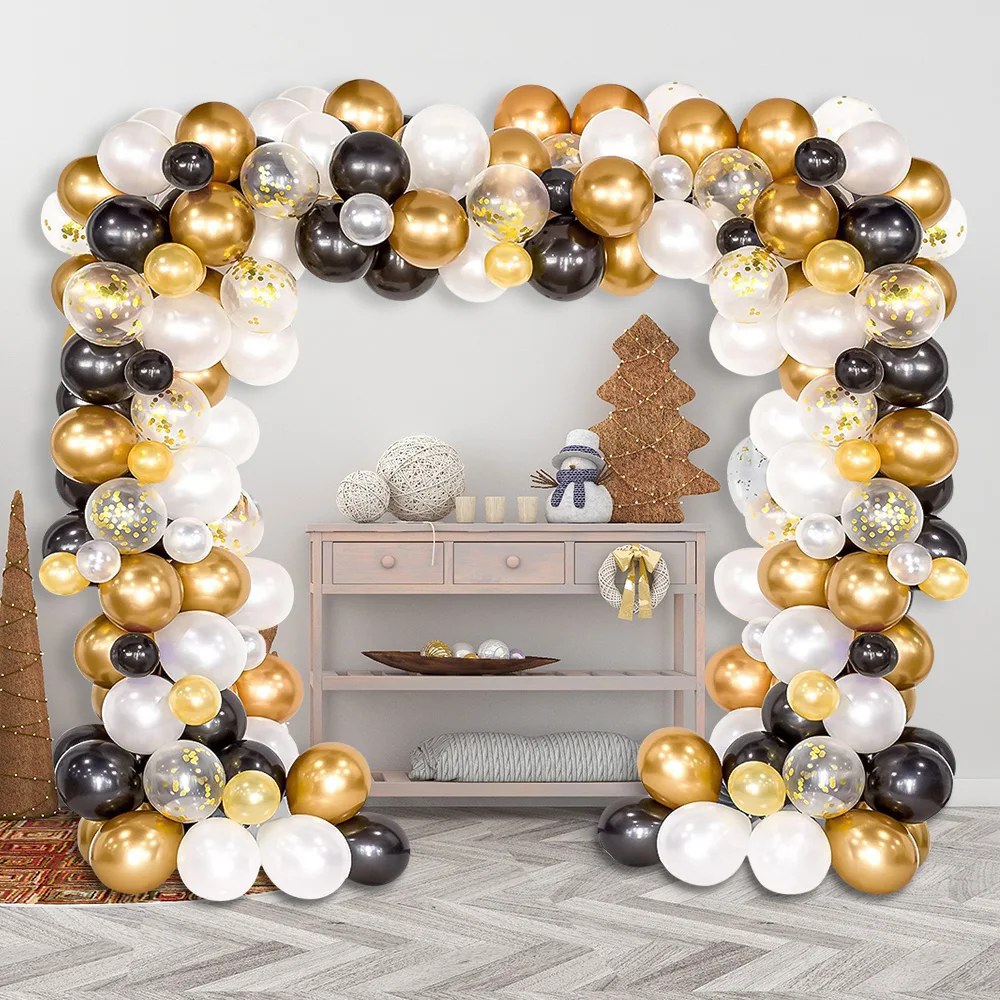 Набор латексных шаров 120 шт., черные, золотые, белые украшения для спальни, свадьбы, дня рождения, Рождества, Пасхи, Хэллоуина