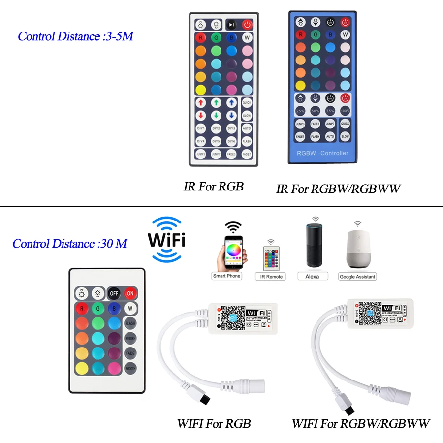 Гибкая светодиодная ленсветильник с пультом дистанционного управления и питанием, 12 В, 5050, Wi-Fi, RGB, RGBW, RGBWW, 5 м, 10 м