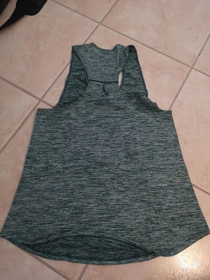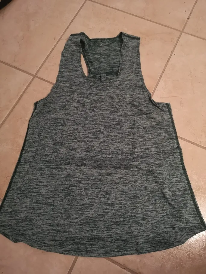 Майка сверху узкая (на ОГ 88 размер М в обтяжку), зато заметно расширяется к низу. Фасон "колокол". не совсем то, что я ожидала, тем не менее для качалки очень даже подойдет: ткань тоненькая, сама шмотка нежаркая и открытая в нужных местах, частые стирки должна хорошо переносить.