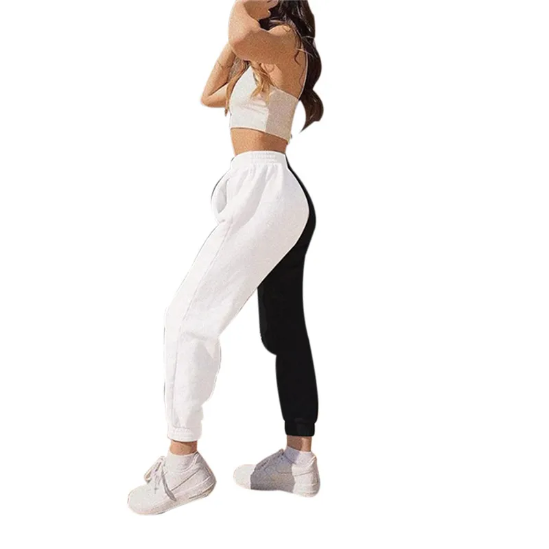 Брюки с высокой талией, черные, белые, лоскутные, повседневные, свободные, стройнящие, спортивные, для девочек, женские спортивные штаны джоггеры
