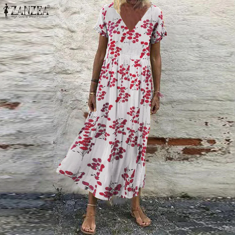 Весенний женский сарафан, богемное цветочное длинное платье ZANZEA ...