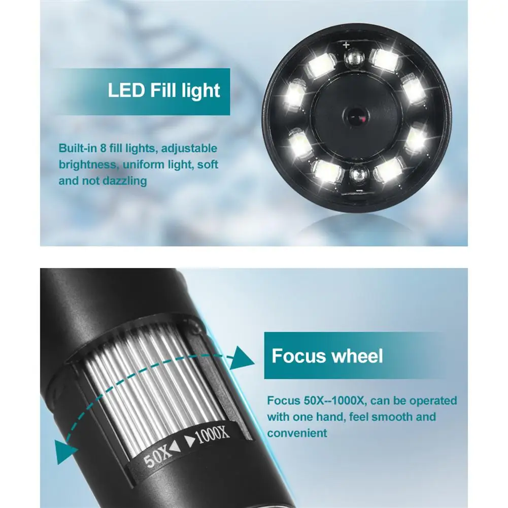 Цифровой микроскоп 0-1000X, Wi-Fi микроскоп, лупа, USB микроскопы с подставкой для Android IOS IPhoneIPad, цифровой микроскоп