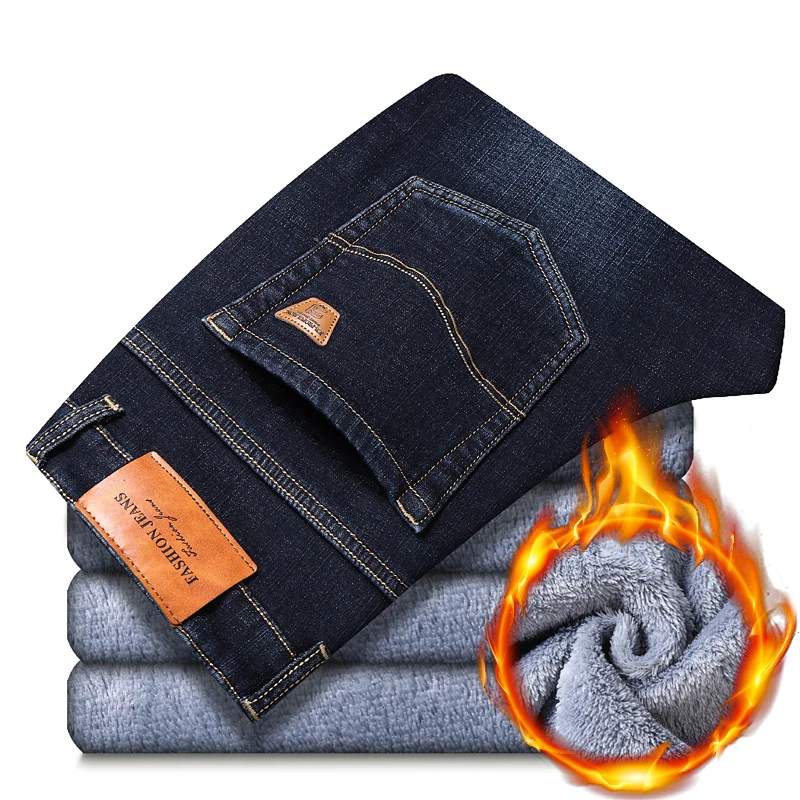 2020 зимние рабочие джинсы, мужские черные облегающие эластичные плотные бархатные брюки, теплые джинсы, повседневные мужские брюки из флиса