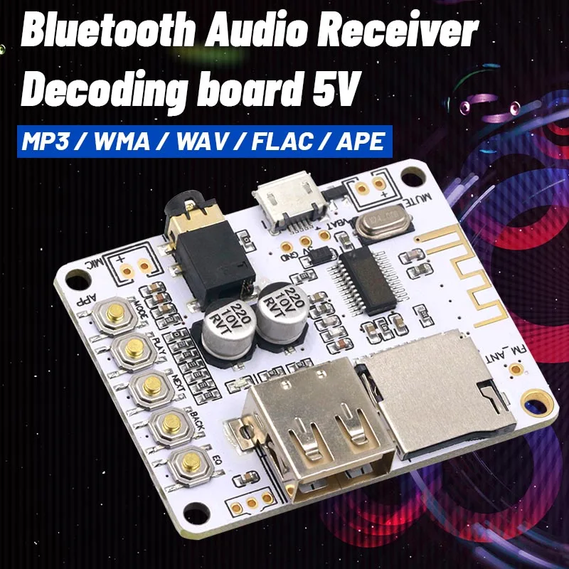 Плата аудиоресивера Bluetooth с USB-разъемом для TF-карты, декодирование воспроизведения, выходное напряжение 5 В, 2.1, беспроводной стерео музыкальный модуль