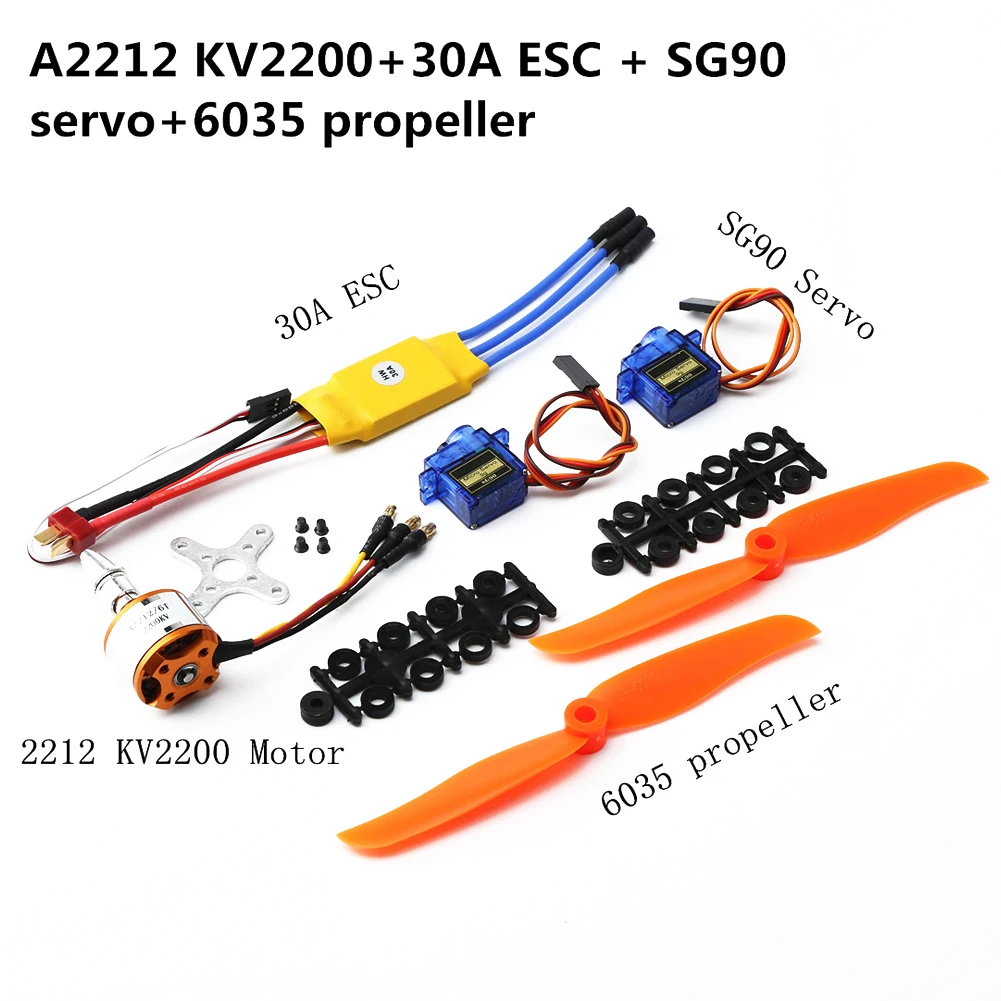A2212 2200KV бесщеточный двигатель 30A ESC SG90 9G микро сервопривод 6035 пропеллеры для RC самолета с фиксированным крылом вертолета NSV775