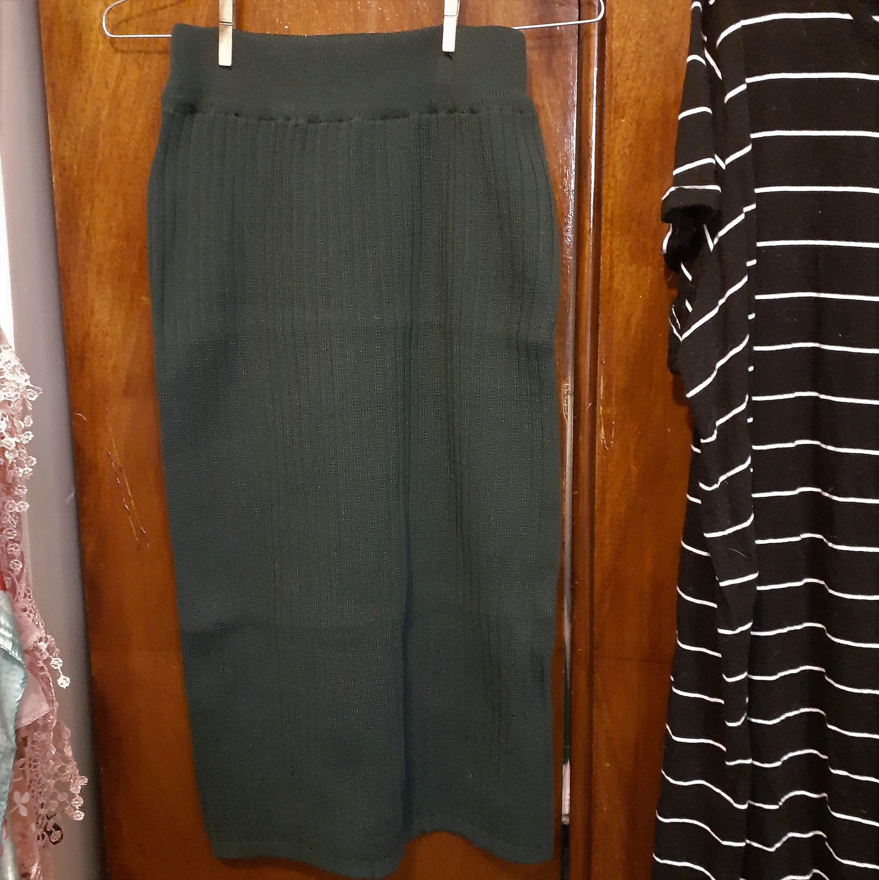 Юбка женская трикотажная средней длины, винтажная плотная плиссиров...