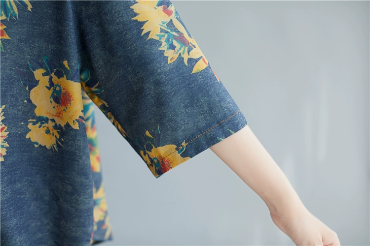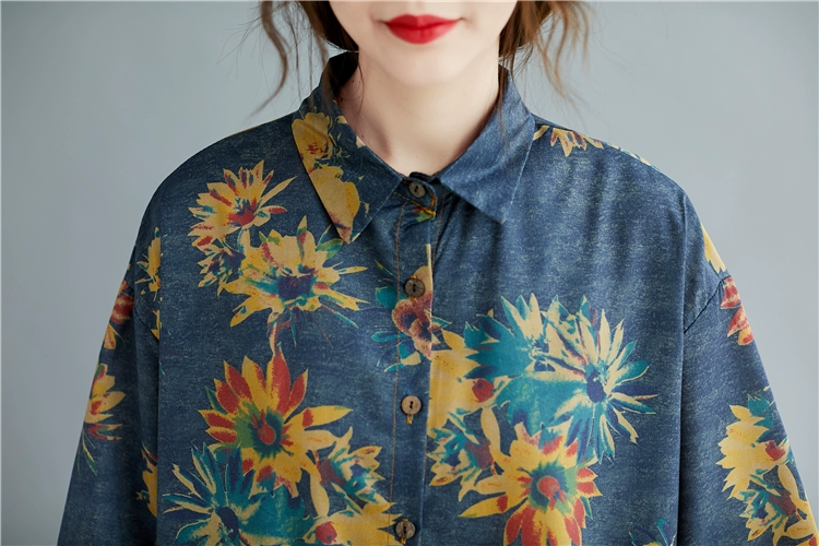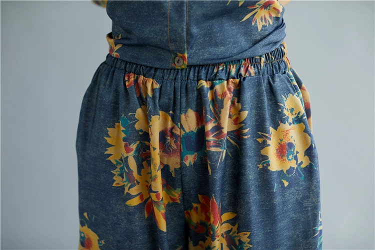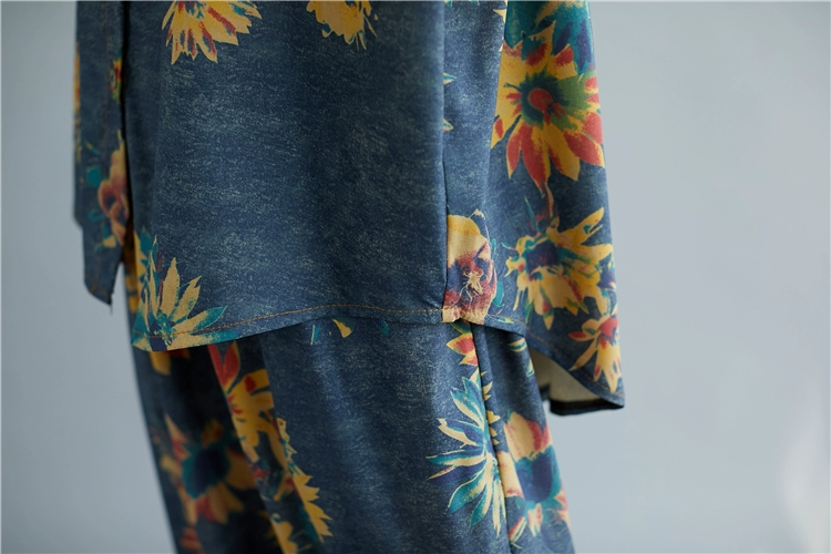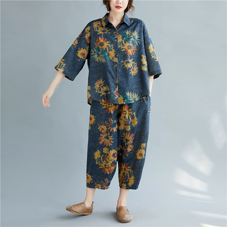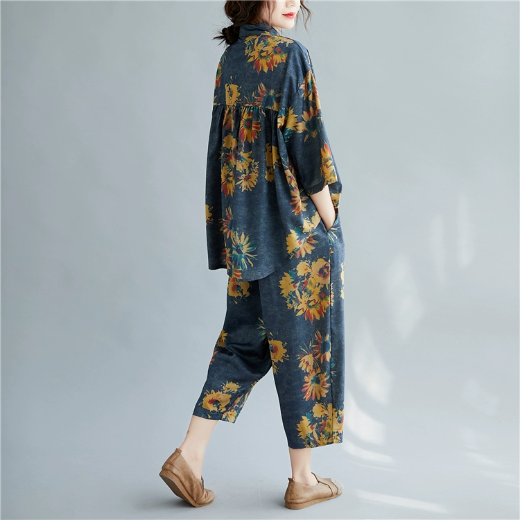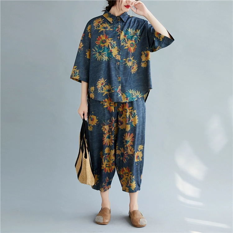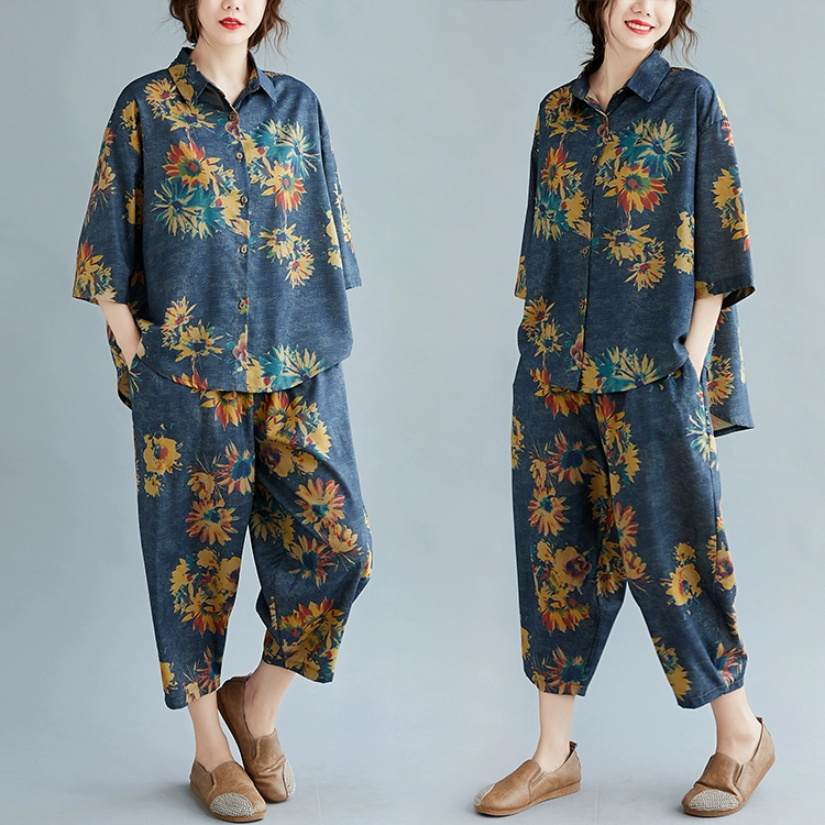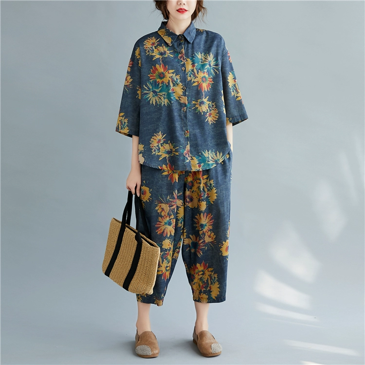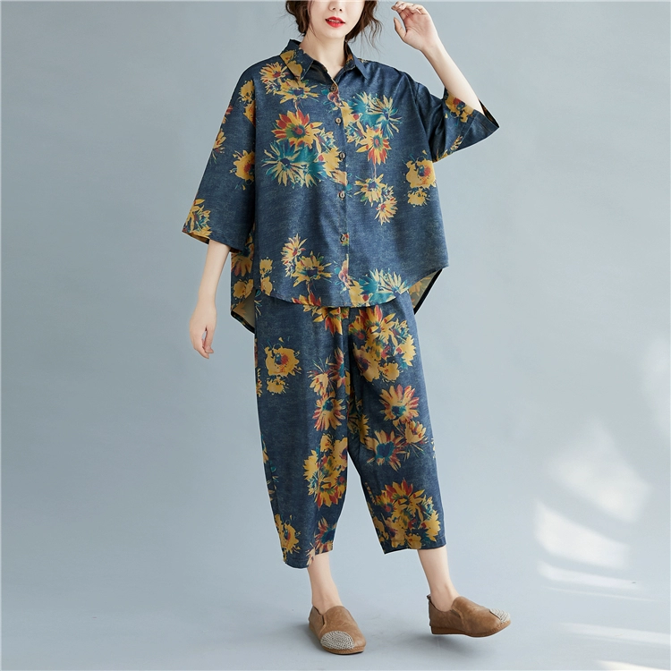 Женский костюм с цветочным принтом DIMANAF, винтажный топ из хлопка и льна на пуговицах, свободные длинные штаны, осенний комплект