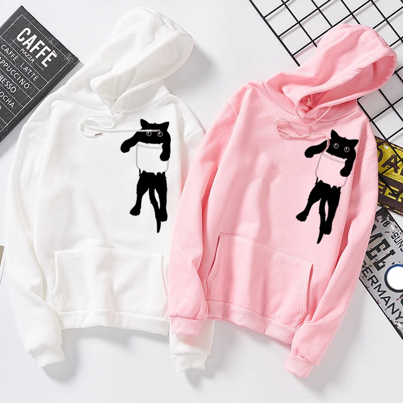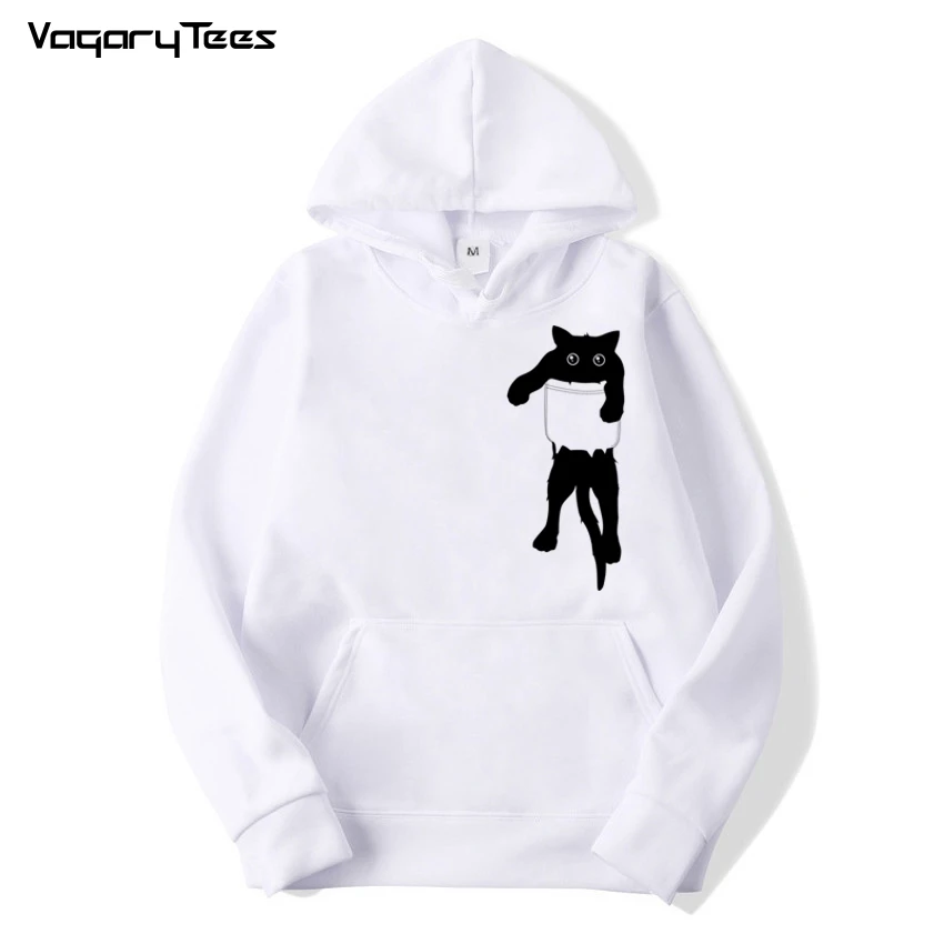 Толстовка мужская свободного покроя, художественный свитшот с карманом, художественный Рисунок, с изображением кота, милые топы для мальчиков, модная крутая уличная одежда