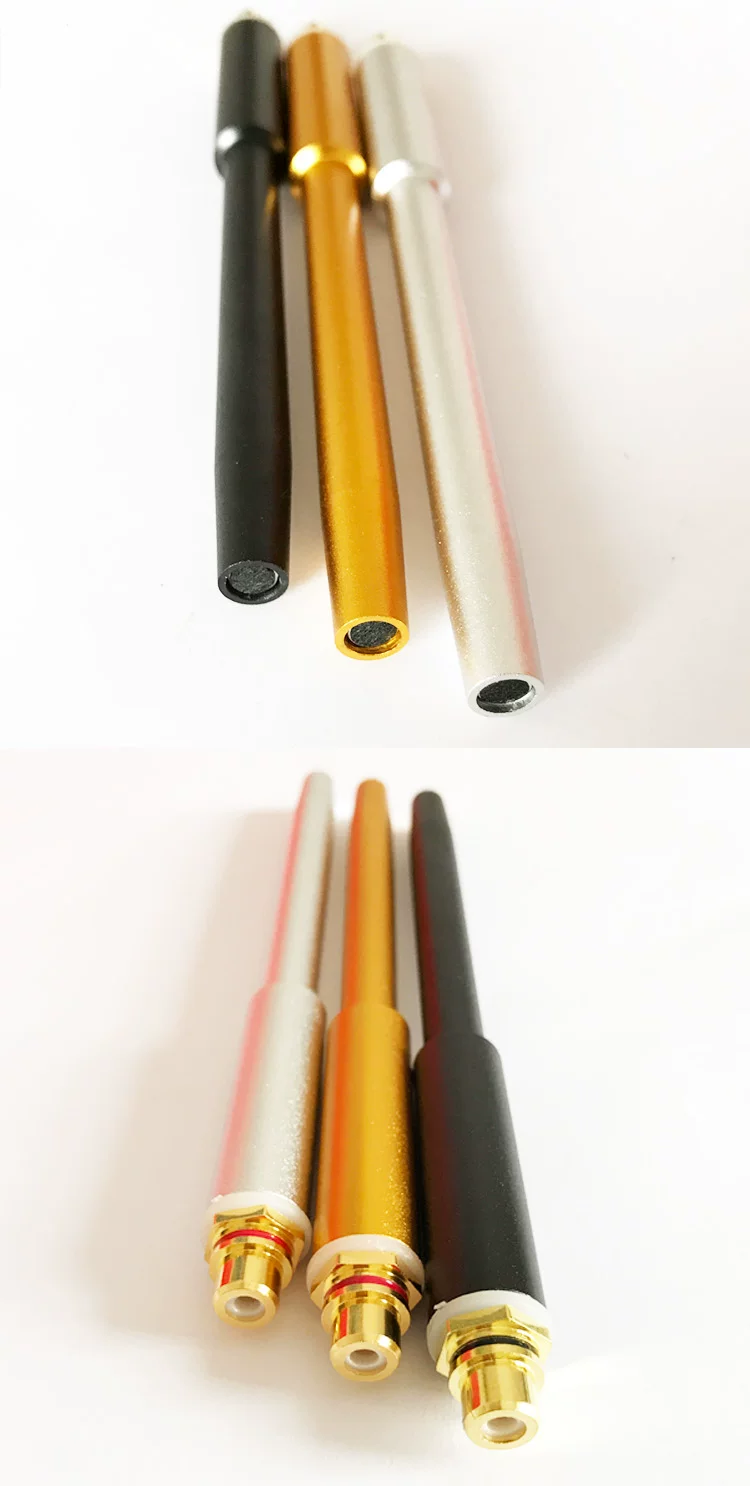 Размер корпуса: диаметр толстой части 14 мм, тонкой части 10 мм, длина 150 мм (без RCA гнезда). Предполагаю, что внутри капсуль напрямую соединен с RCA гнездом. Диаметр капсуля 6 мм, по измерениям частоты похож на WM-61A. Откалибровать микрофон и можно пользоваться.