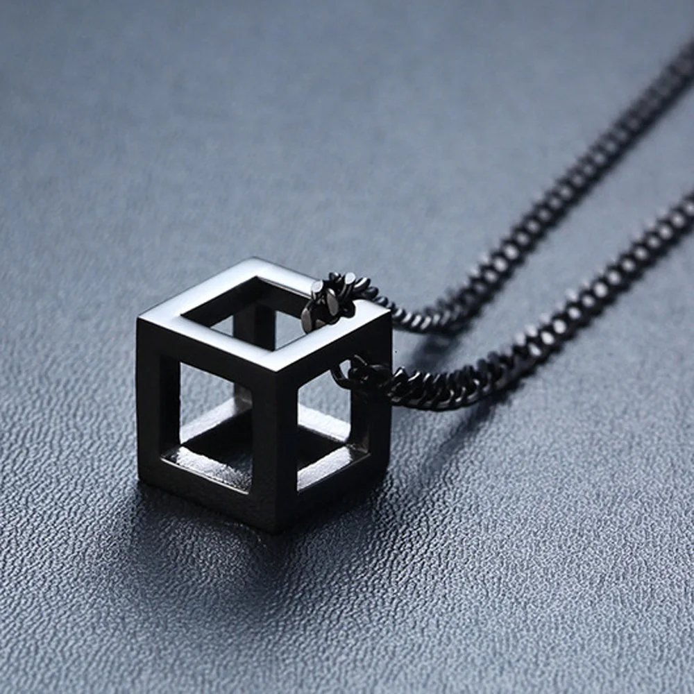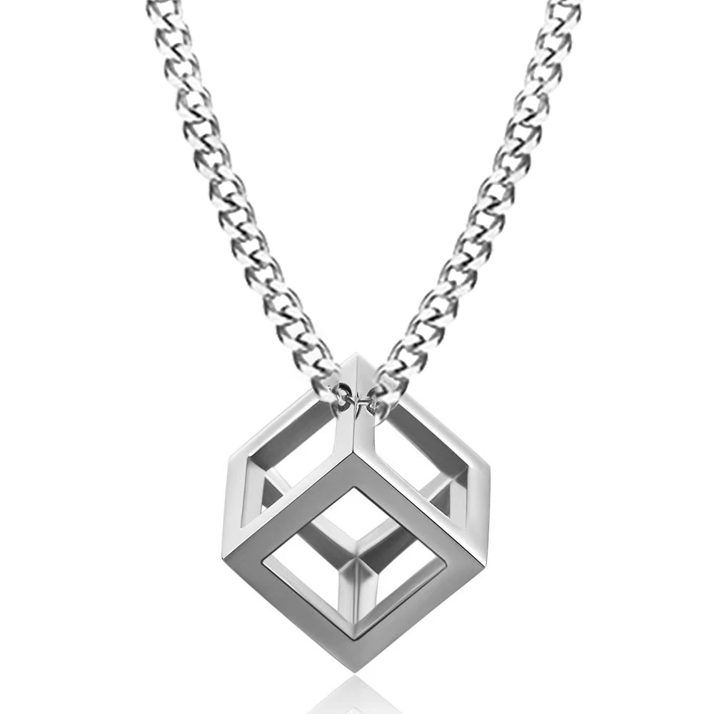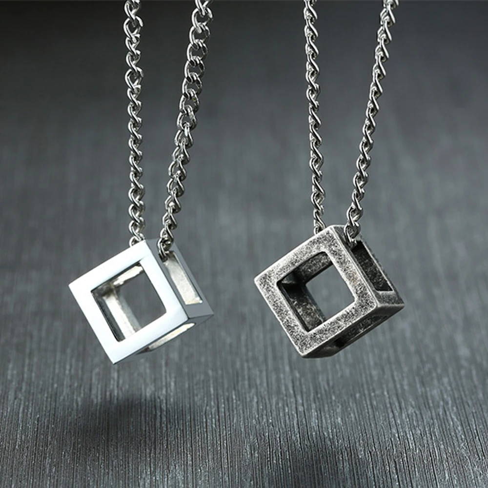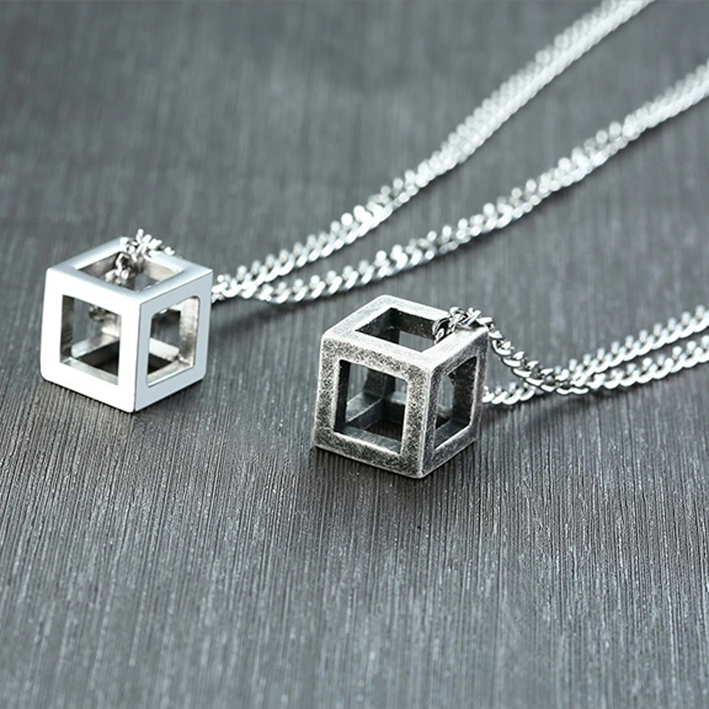 Панк пустой кубик подвески для мужчин и женщин унисекс из нержавеющей стали, квадратные очаровательные ювелирные изделия, колье геометрической формы