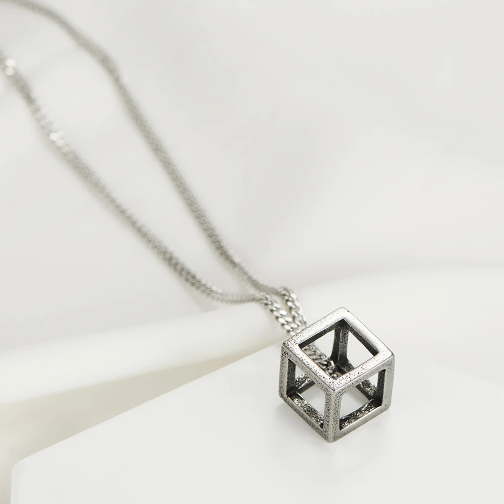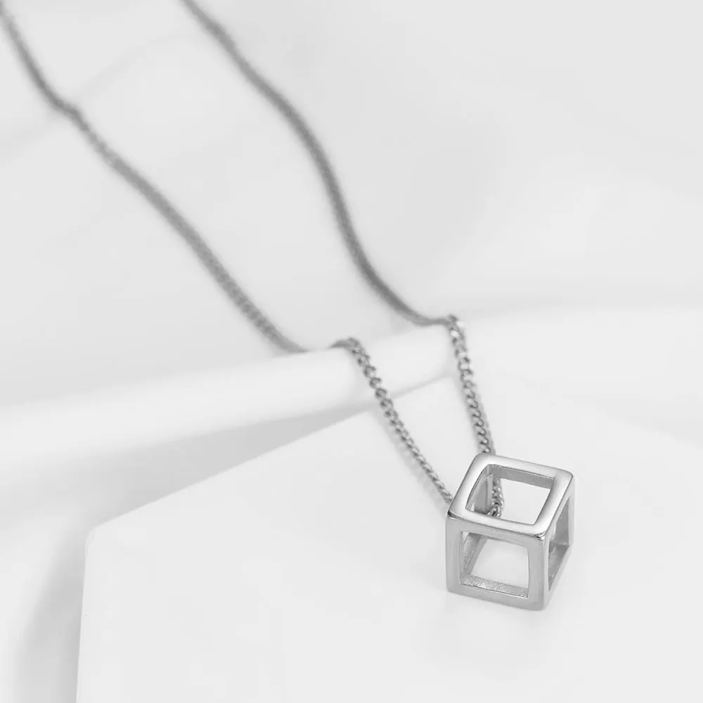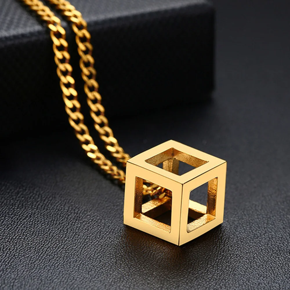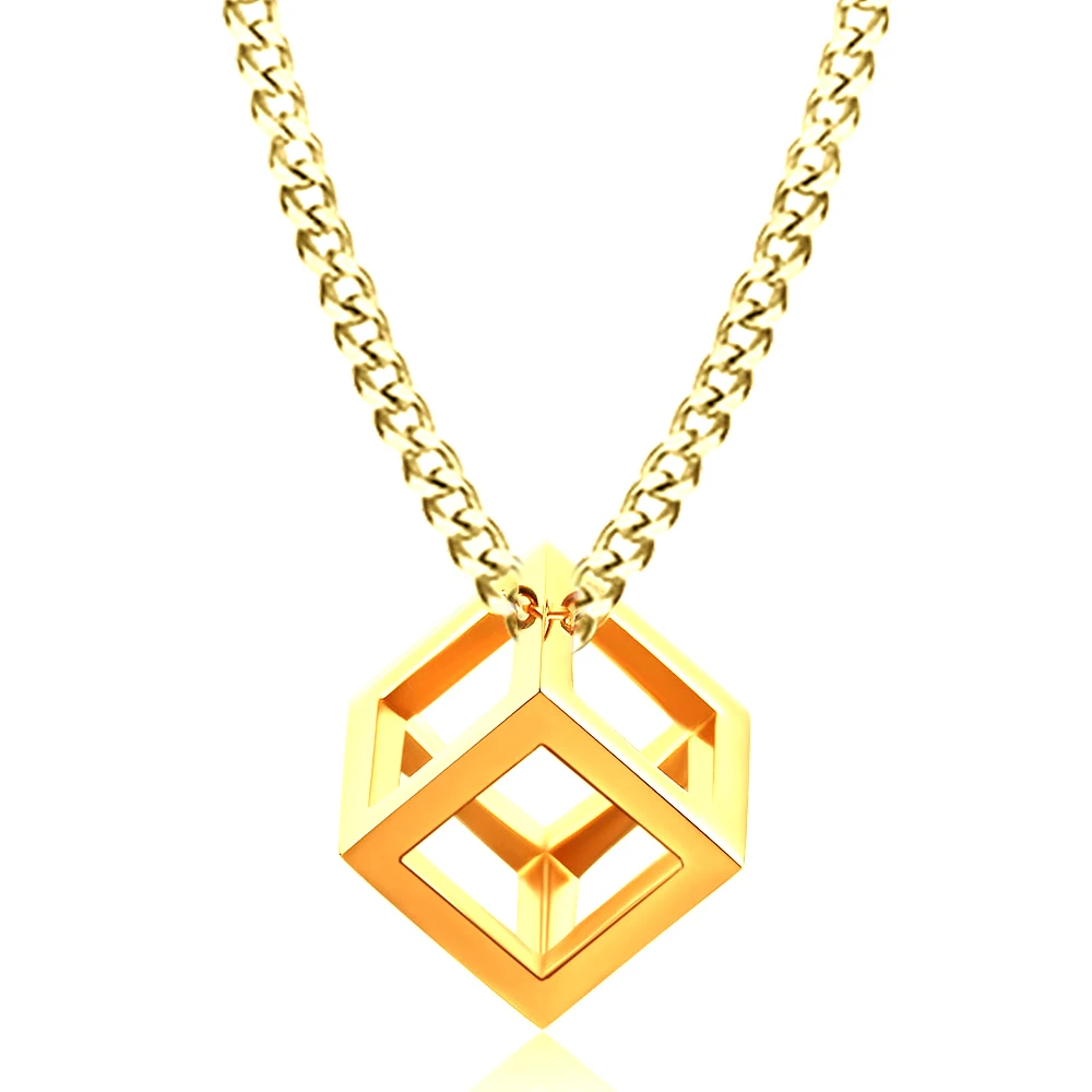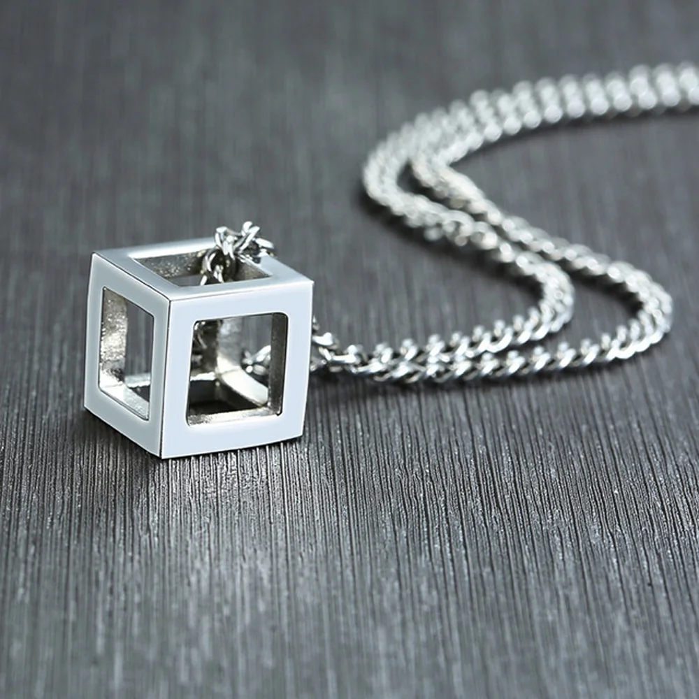 Панк пустой кубик подвески для мужчин и женщин унисекс из нержавеющей стали, квадратные очаровательные ювелирные изделия, колье геометрической формы