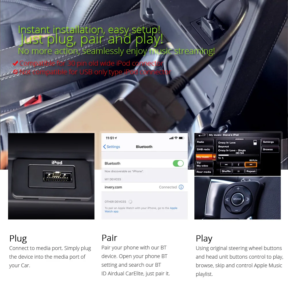 Bluetooth-совместимый автомобильный комплект для музыкального ресивера Range Rover Airdual для Land Rover 30 pin Интерфейс iPod AUX адаптер для Jaguar