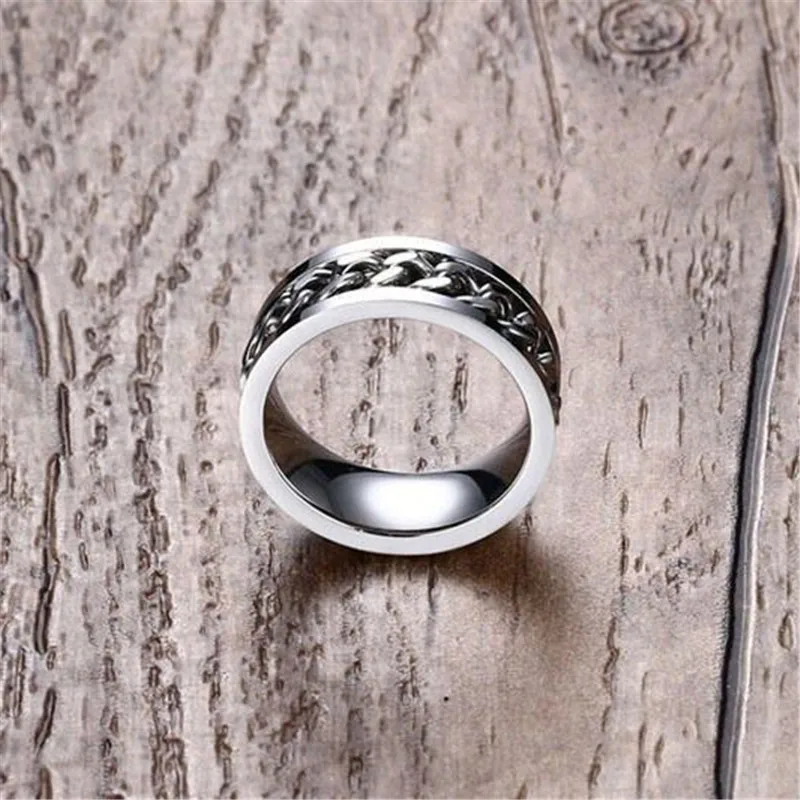 Прохладный Нержавеющаясталь вращающийся Для мужчин кольцо из белого...