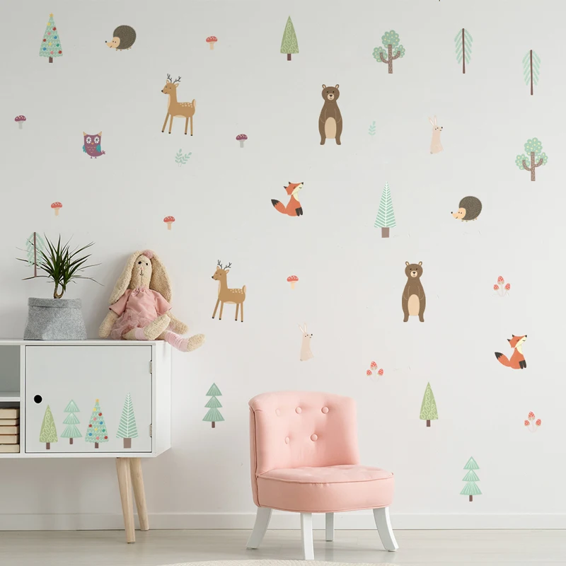 2 стиля прекрасный лес на стену для домашнего декора анималистический настенный Стикеры Ins "сделай сам" для дверь детской комнаты окна декоративные Стикеры s детская общежития маленькая настенная живопись