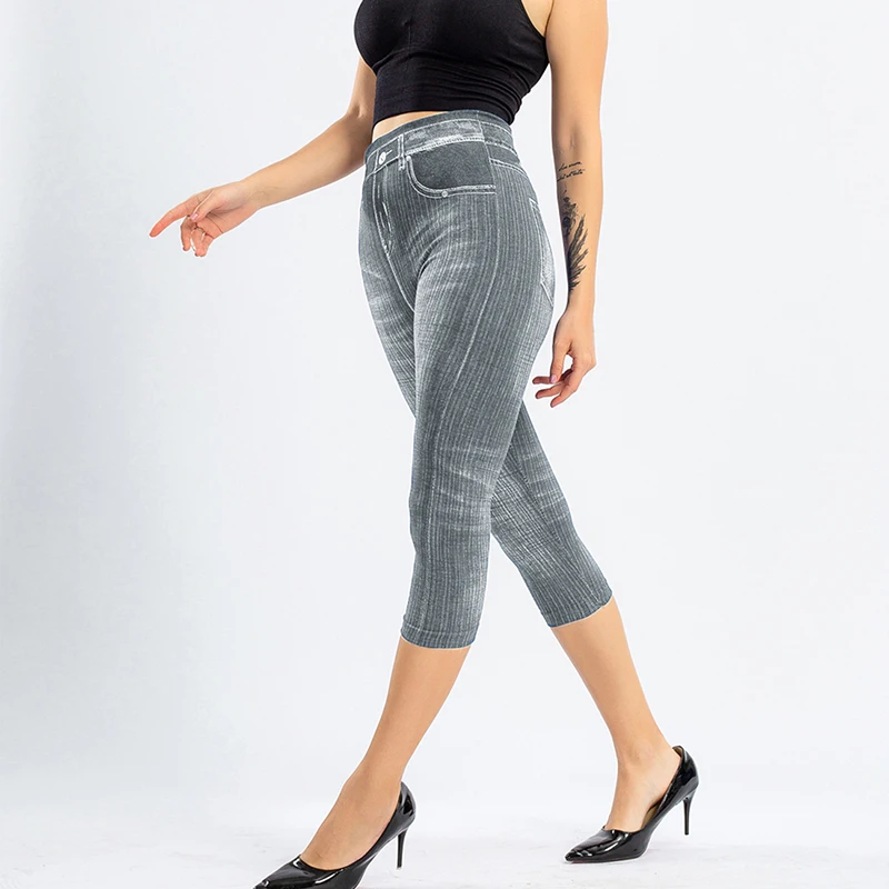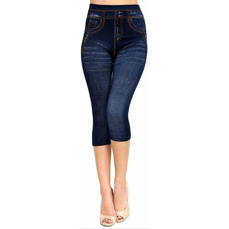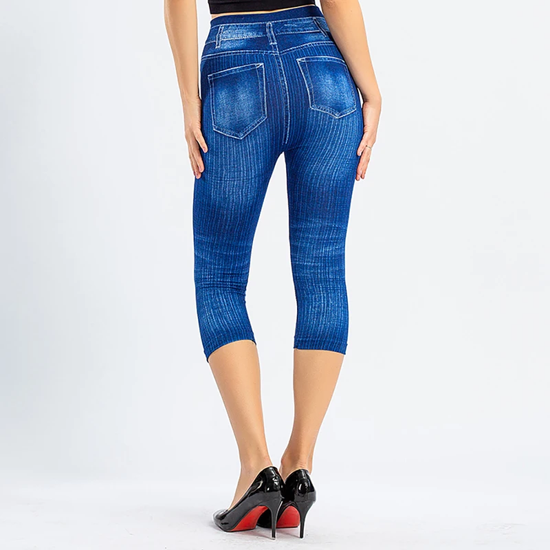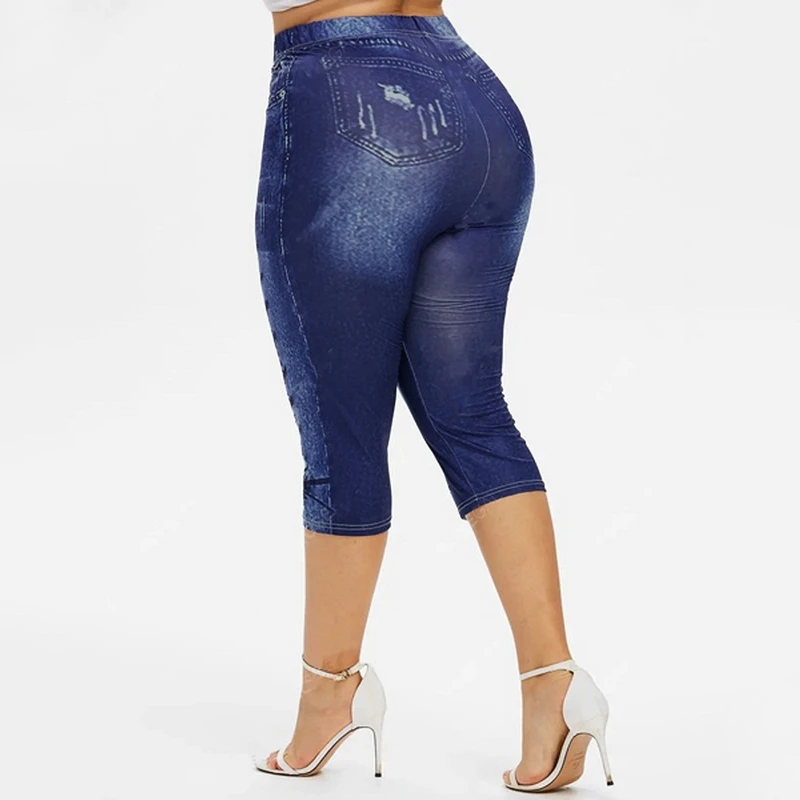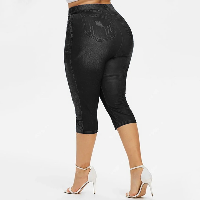 Женские короткие Леггинсы для йоги, из искусственного денима, с цветочным принтом, женские шорты с высокой талией, размера плюс