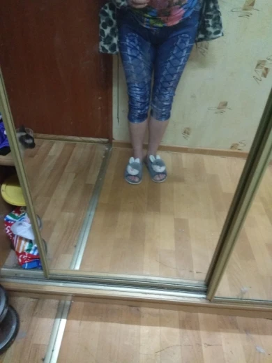 Одни легенсы красивые и по размеру,но другие просто трагедия,носить их будет невозможно!Я заказывала две пары одинакового размера но на фото видно насколько они отличаются.Швы и спереди и сзади идут не по центру!