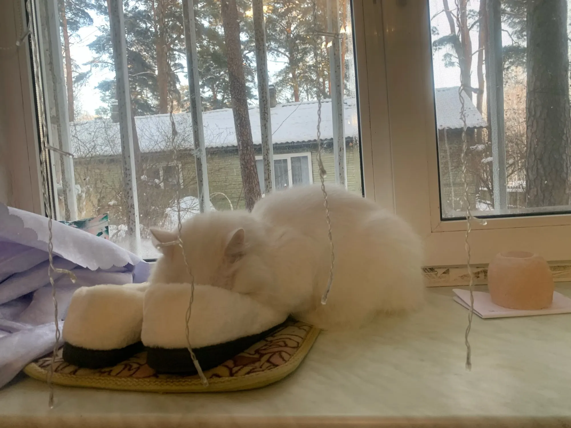 Ткань достаточно тонкая, цвет не такой яркий как на фото. Внизу есть завязки для натяжения, удобно. В целом довольна. Спасибо