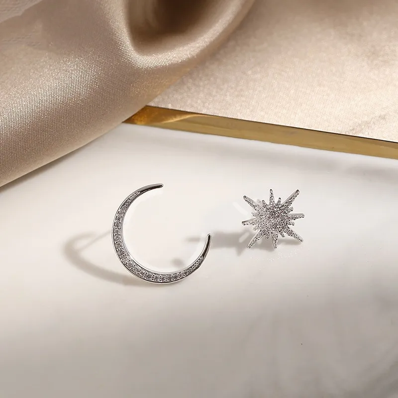Женские серьги с Луной и звездой FNIO, асимметричные серьги в Корей...