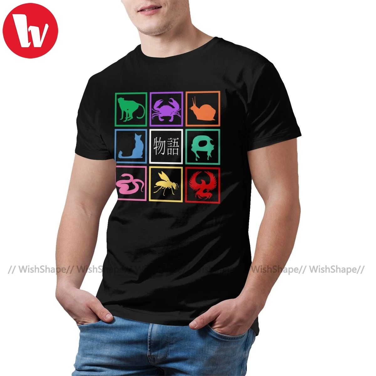 Футболка Bakemonogatari Мужская в стиле оверсайз, черная футболка с...