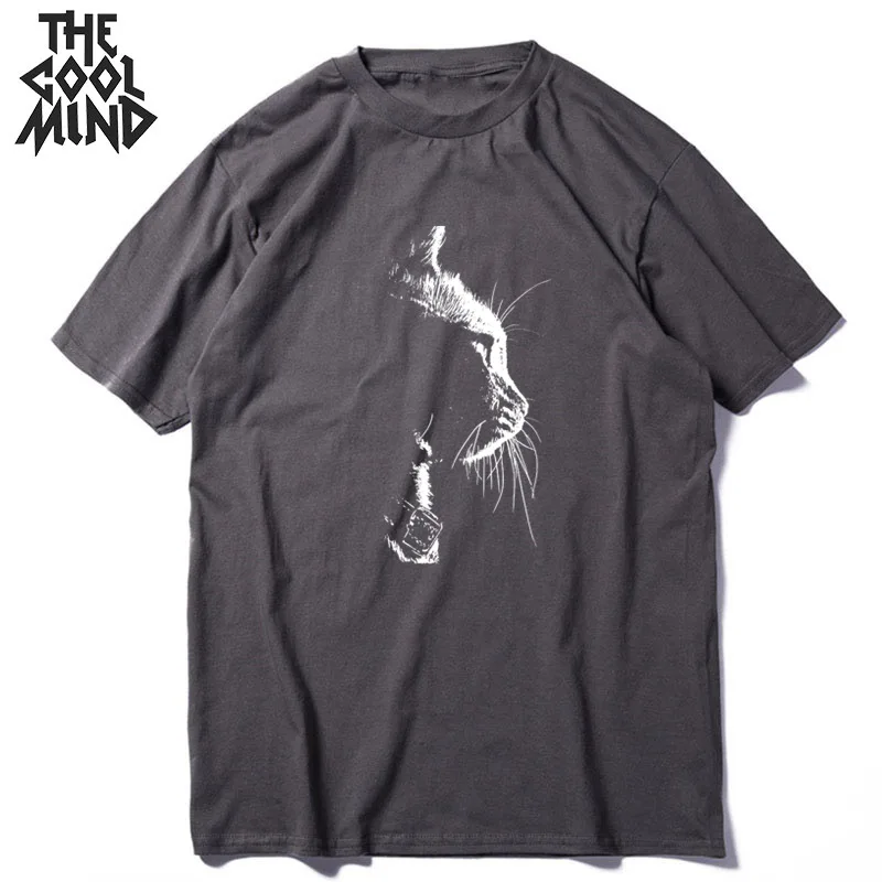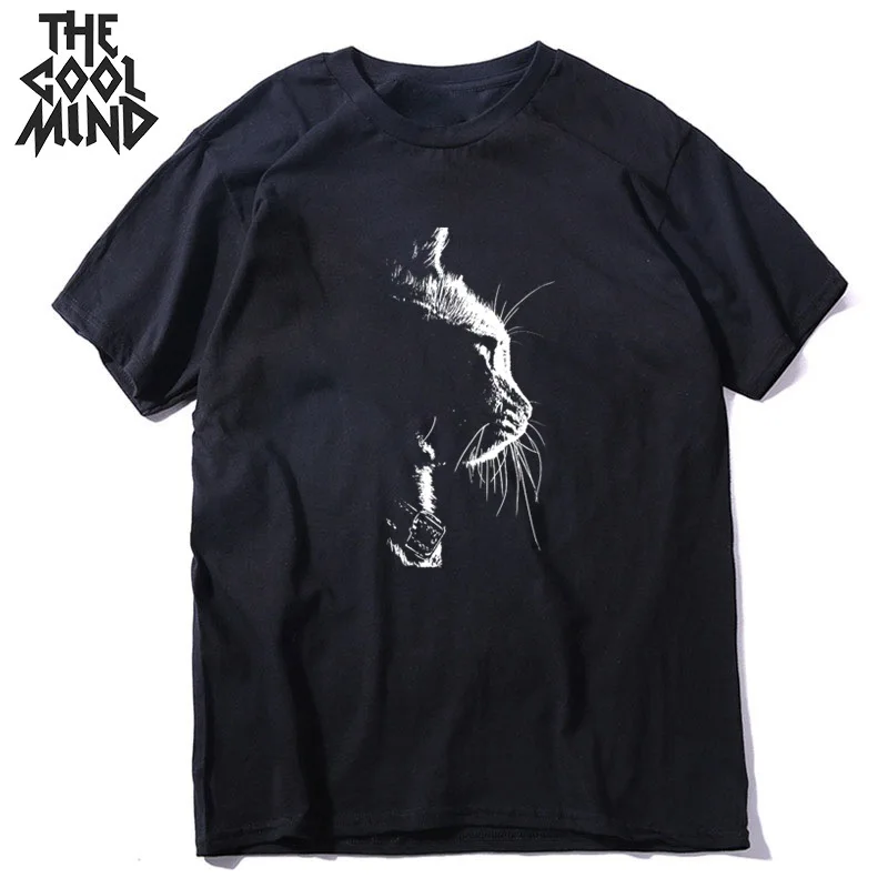 Мужская футболка COOLMIND, Повседневная футболка из 100% хлопка с коротким рукавом и принтом головы кота, летняя футболка с круглым вырезом, Мужская футболка, топы
