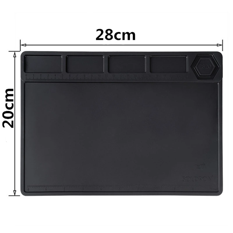 Он устойчив к коррозии и не имеет формы, изготовлен из высококачественного силикона. Коврик обладает отличными теплоизоляционными свойствами, паяльник может паять непосредственно в коврике. Противоскользящая и антистатическая конструкция, поверхность и задняя сторона имеют противоскользящую конструкцию. Это идеальный продукт для пайки электронной сборки или ремонта электроники и печатных плат.