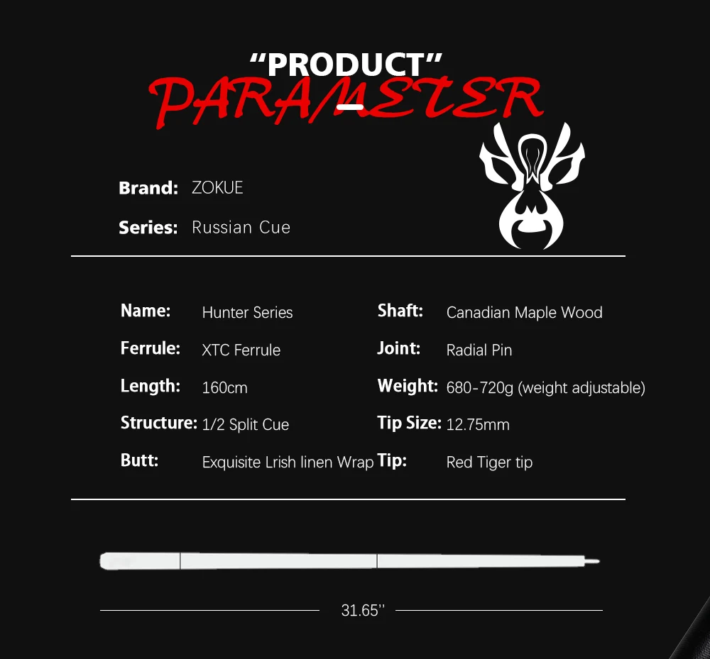 Страна: IL Color: Hunter-3with case Cue Tip Diameter: 12.75mm Доставка: China Post Air Parcel 05.03.2023