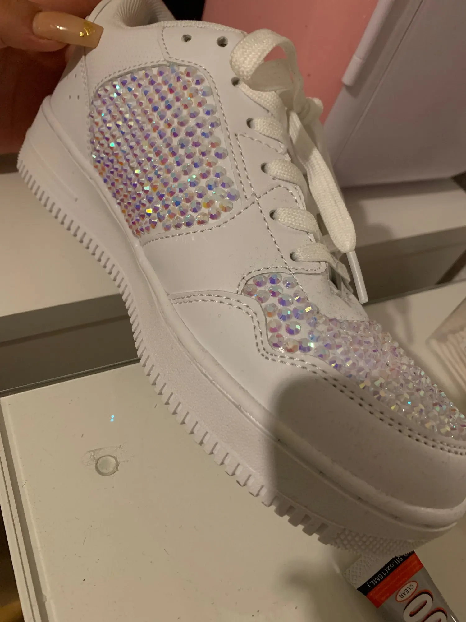 Красивый блеск, БЫСТРО прибыл, клеится и остается на месте.