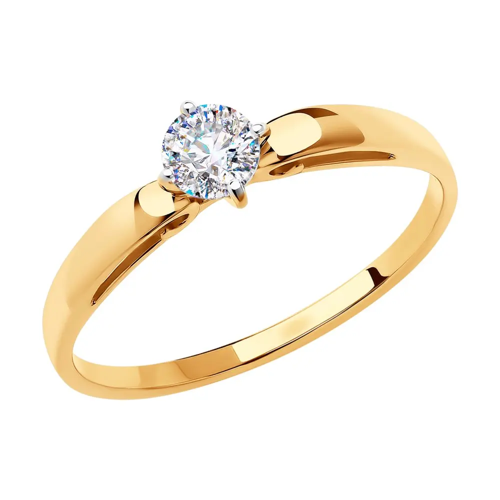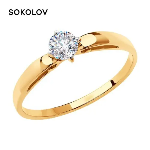 Кольцо SOKOLOV из золота с фианитом, Золото, 585, Женское, Оригинальная продукция