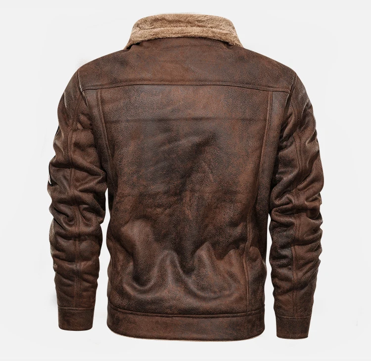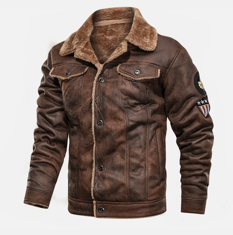Куртка мужская из искусственной кожи, теплая кашемировая военная ку...