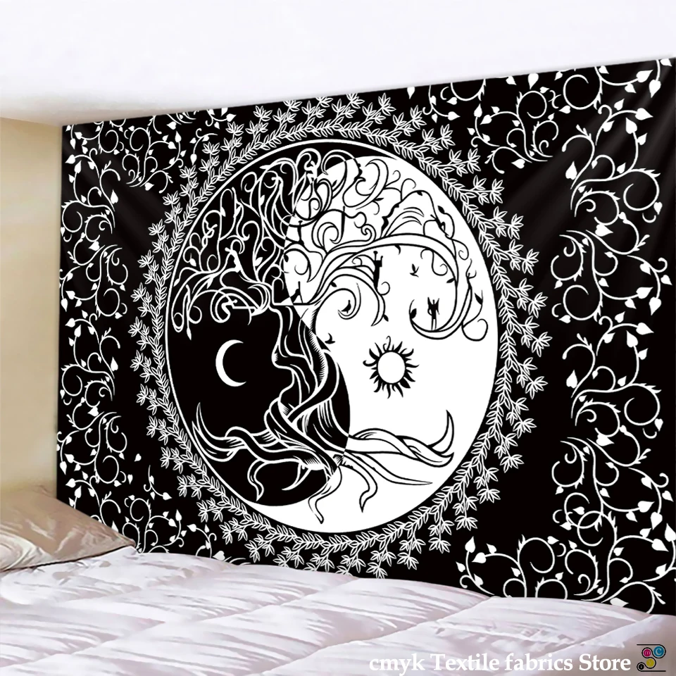 Индийский гобелен с мандалой, настенный гобелен с солнцем, луной, таро, Настенный Ковер, психоделический тапиз, колдовство настенный гобелен из ткани