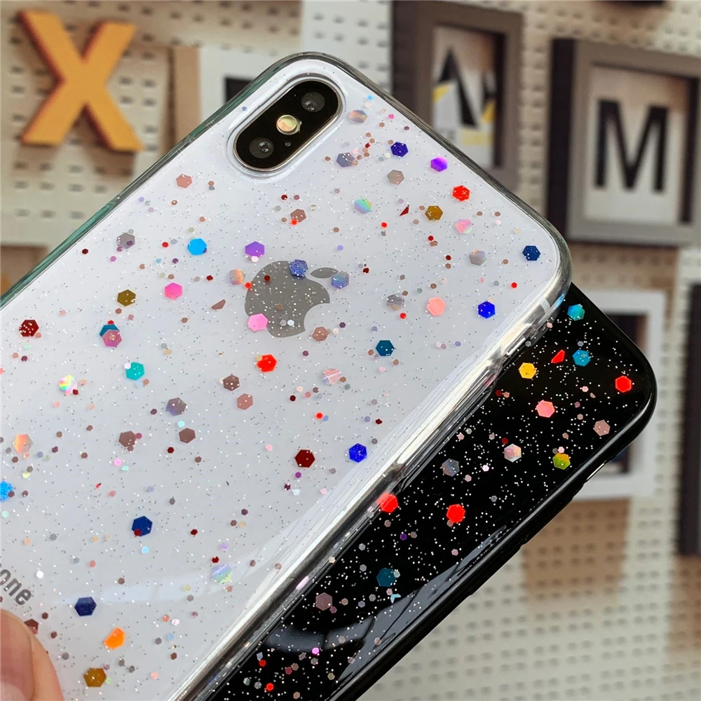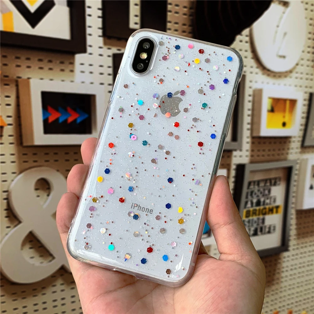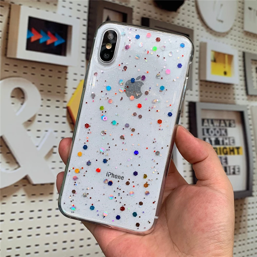 Прозрачный противоударный чехол-рамка для iPhone 11 Pro Max XR XS Max 6 6S 7 8 Plus X SE, блестки различных цветов, задняя крышка телефона