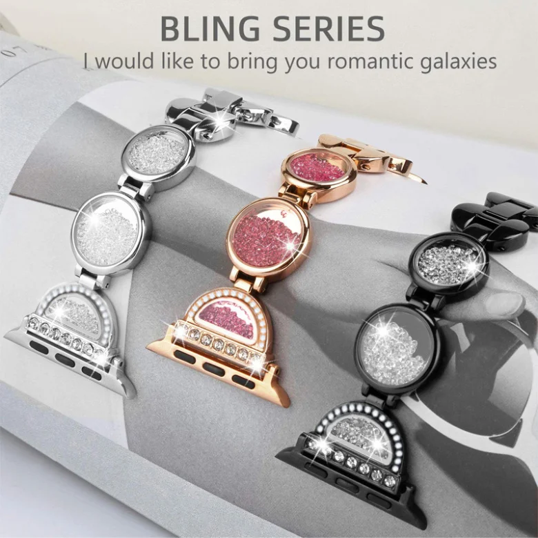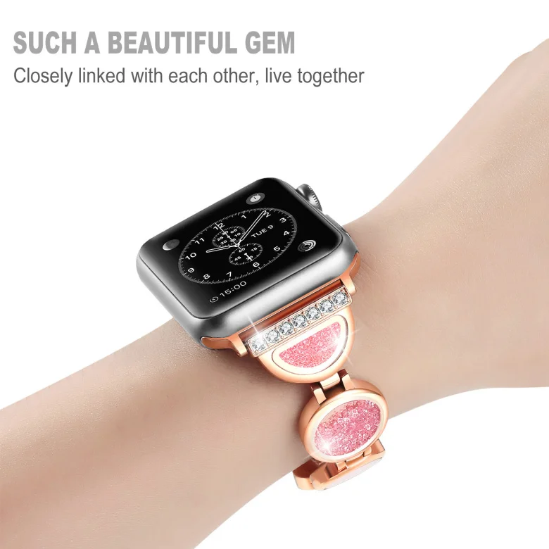 【Регулируемый Размер 】: женский браслет iwatch рекомендуемый размер запястья: 5,5-7,5 дюйма, подходит практически для всех размеров запястья, он съемный и размер регулируется, вы можете просто удалить дополнительные звенья, чтобы изменить Размер ремешка, никаких инструментов не требуется, очень легко снимать/снимать.【Уникальный дизайн: Браслет Apple watch, полный блестящих Зыбучих песчаных Стразы, эти необыкновенные шедевры сочетают в себе нержавеющую сталь без никеля с классическими украшениями из драгоценной стразы, приносят вам романтические галактики и очаровательный темперамент.[Материал премиум-класса]: браслет iwatch изготовлен из высококачественной нержавеющей стали с гладкой поверхностью и приятным блеском, обладает высокой устойчивостью к ржавчине, коррозии и обесцвечиванию, в отличие от сплава, он не выцветает или не потускнеет, обеспечивает шелковистость и гладкость. Прочный и долговечный.【Идеальный подарок: Этот ремешок для часов apple watch Классический и стильный, изысканный, но не преувеличенный, отлично подходит для повседневного или рабочего наряда, а также подходит для любого особого случая, например: дня рождения, свадьбы, юбилея, день Святого Валентина и т. Д. Это идеальный подарок на фестиваль, например: Рождество, Новый Год, День благодарения и т. Д.【Упаковка подарочной коробки 】 этот женский ремешок iwatch упакован в красивую подарочную коробку, гарантируя, что они готовы к подарку по прибытии и сделают подарок-дарим легкий вид. Хорошо смотрится, если вы носите всех видов одежды.