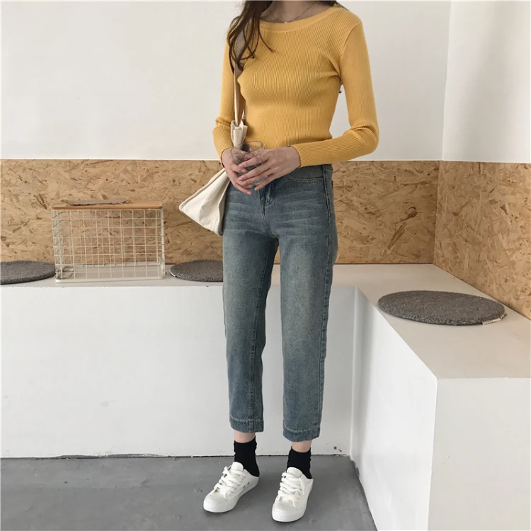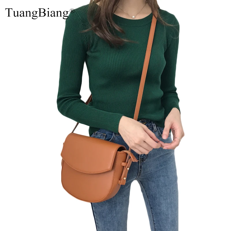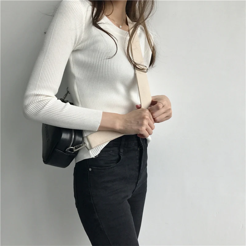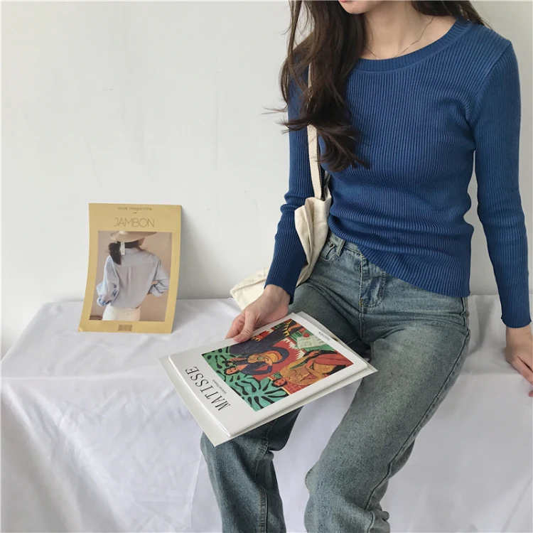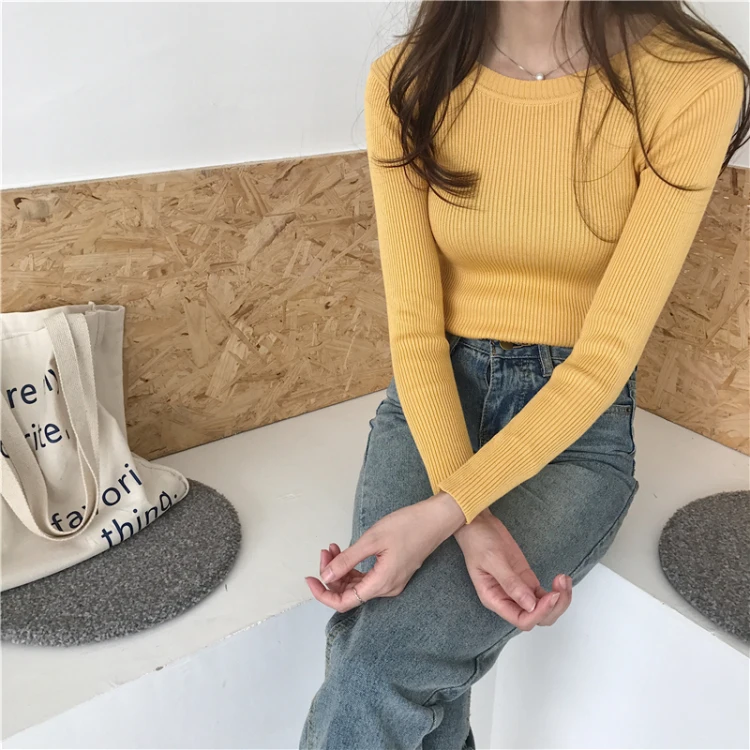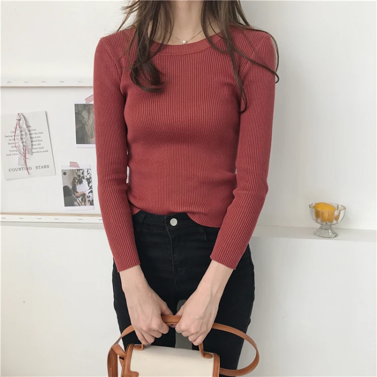 Пуловер женский хлопковый в рубчик, с длинным рукавом и круглым вырезом, мягкий, зеленый, Осень-зима 2021