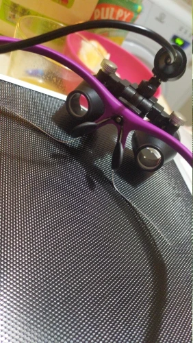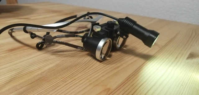 В целом нормально. Неплохие лупы. Рабочее расстояние соответствует. Яркая подсветка. По впечатлению подсветка немного синит. Круг подсветки как раз соответствует полю зрения. Но фонарик все же довольно тяжелый поэтому под его весом очки норовят сползать (впрочем не особо страшно). Но думается я буду использовать налобный фонарь (есть хороший фонарик). При яркой подсветке весьма заметен хроматизм, заметная кривизна поля. Но в принципе это все ожидаемо для такой оптической схемы. Есть небольшое расхождение по высоте окуляров (то-ли уши на разной высоте, то-ли так сделаны очки). Отрегулировать нельзя. В результате имеем не идеальное схождение в круг (не смертельно, но не приятно). На самих очках были какие-то капли масла. При протирке размазал, замаялся оттирать.