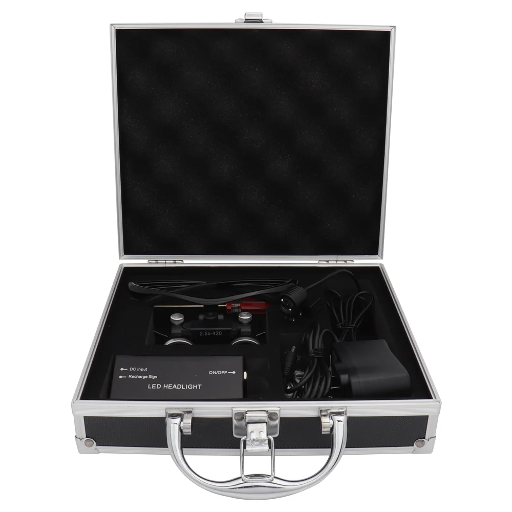 Стоматологические лупы зубная лупа, стоматологическая лаборатория, медицинские лупы, увеличительные Бинокулярные 2,53,5x420, налобный фонарь, 5 Вт, набор, металлическая коробка