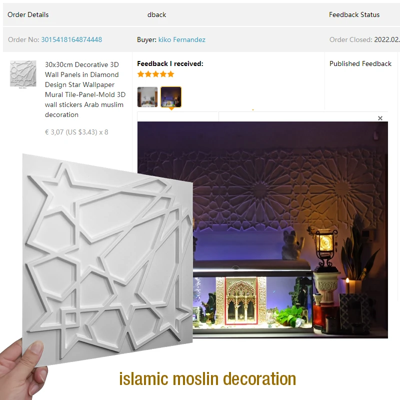 Выглядит так же как на фото, ещё не клеили, потому не знаю как будет держатся, так как с обратной стороны оно полое по рисунку и полностью не прилегает всей поверхностью к стене. Надеюсь все получиться.