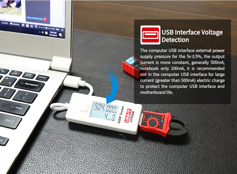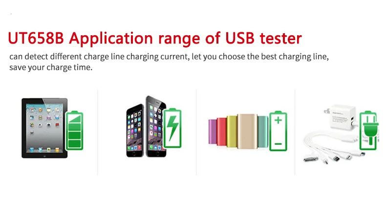 UT658 серия 9VUSB тестер используется для проверки USB зарядное устройство и портативный источник питания электронных продуктов.UT658 может выходное напряжение, ток и мощность. Используйте rs, чтобы отслеживать состояние зарядки любого устройства с питанием от USB.