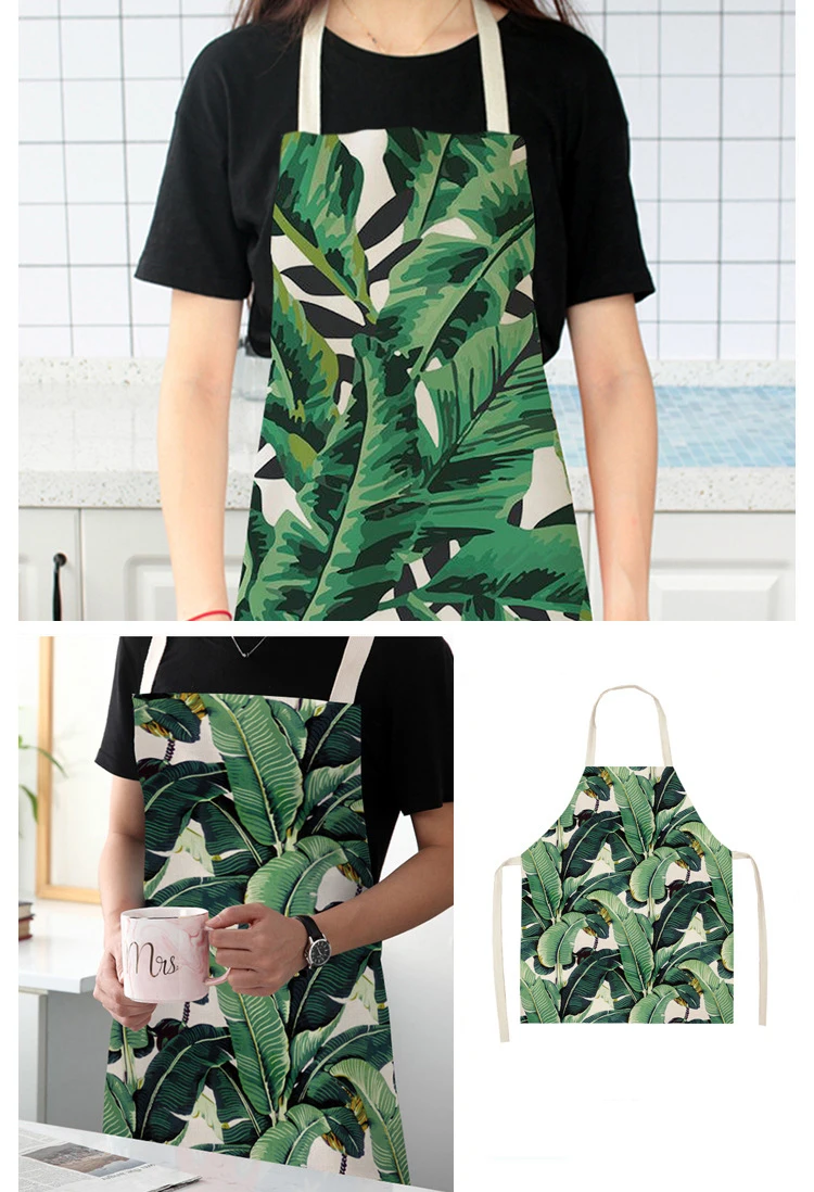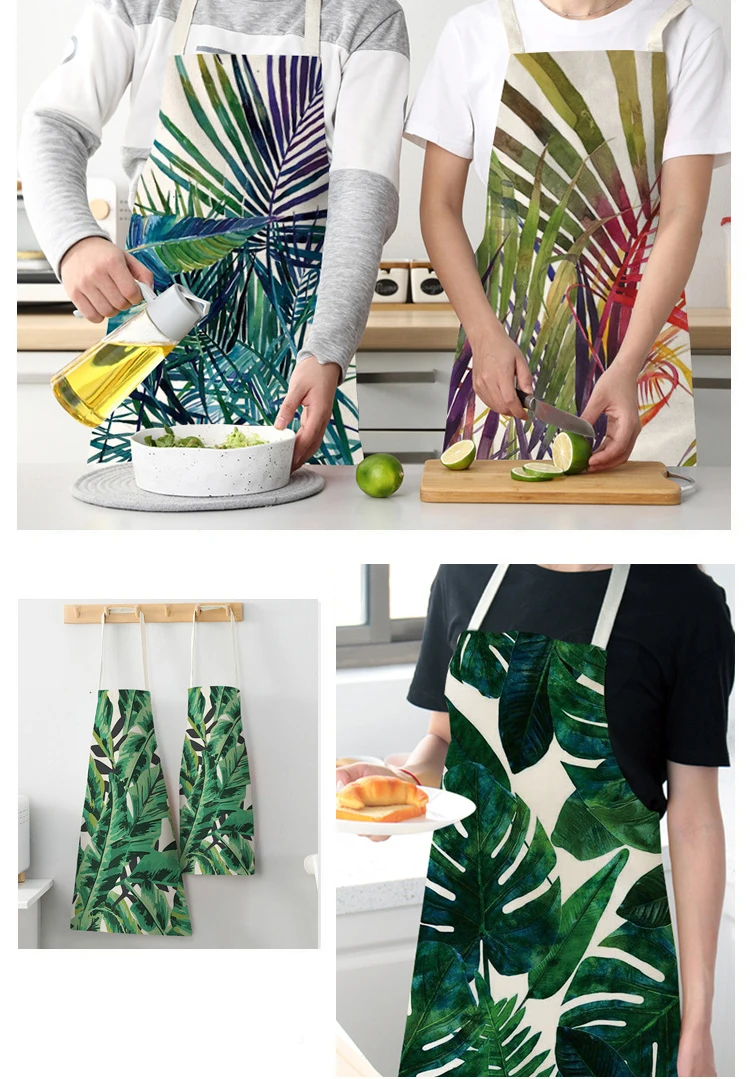 Фартуки хлопковые с тропическим цветком монстеры для мужчин и женщин, кухонные принадлежности для уборки дома, приготовления пищи, выпечки