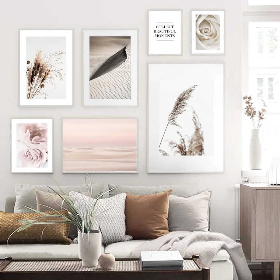 Розовый молочный цветок бежевый язычковый постер пустыня настенное искусство облако картина ландшафт Скандинавская Картина на холсте гостиная декор