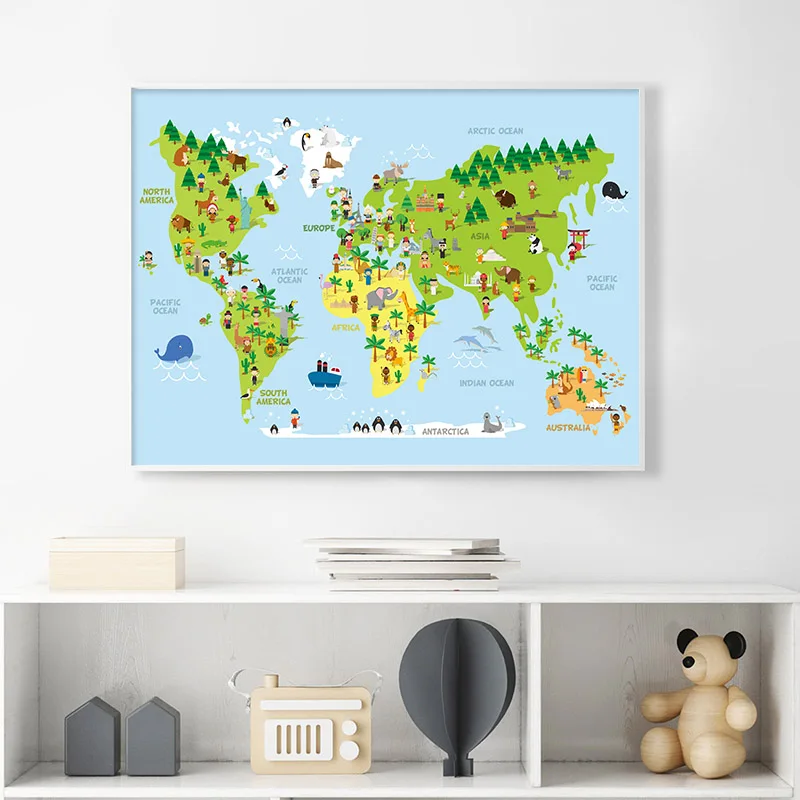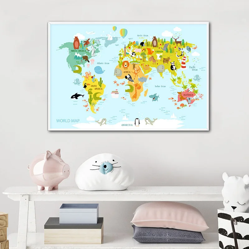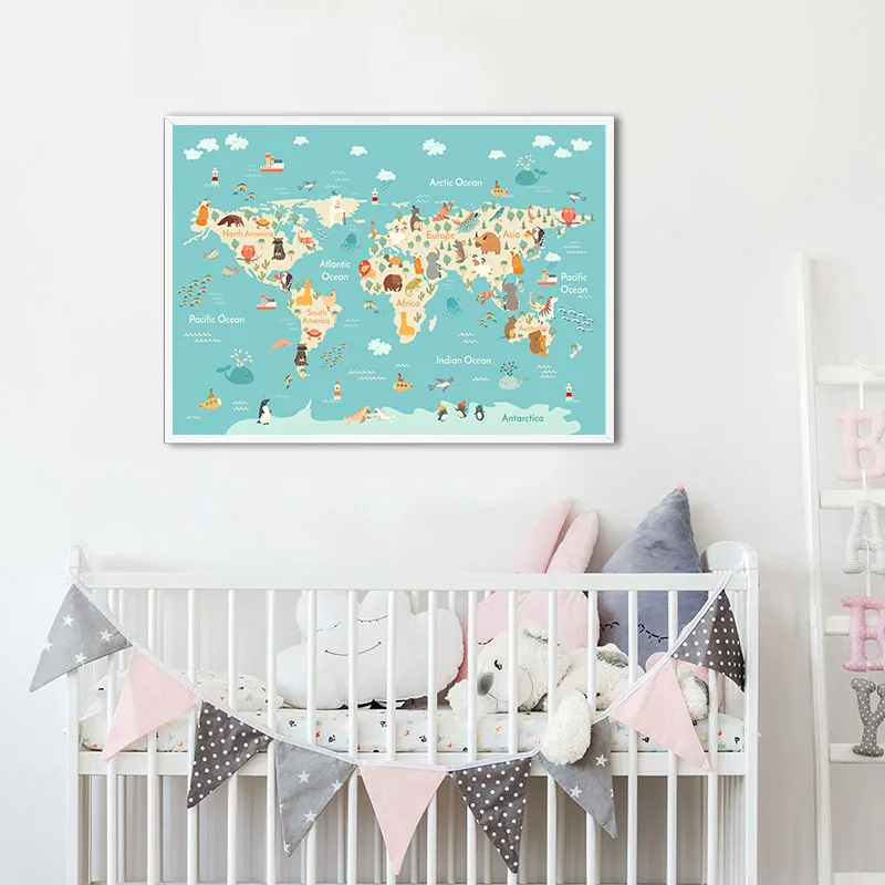 Мультяшные животные океан карта мира ребенок плакат для детской холст печать ребенок просвещение Настенная картина Искусство Декор для детской спальни
